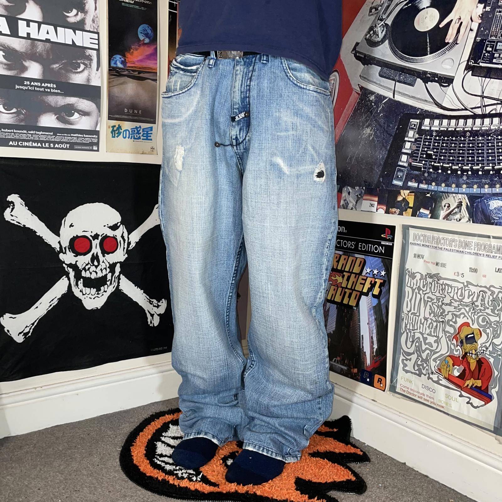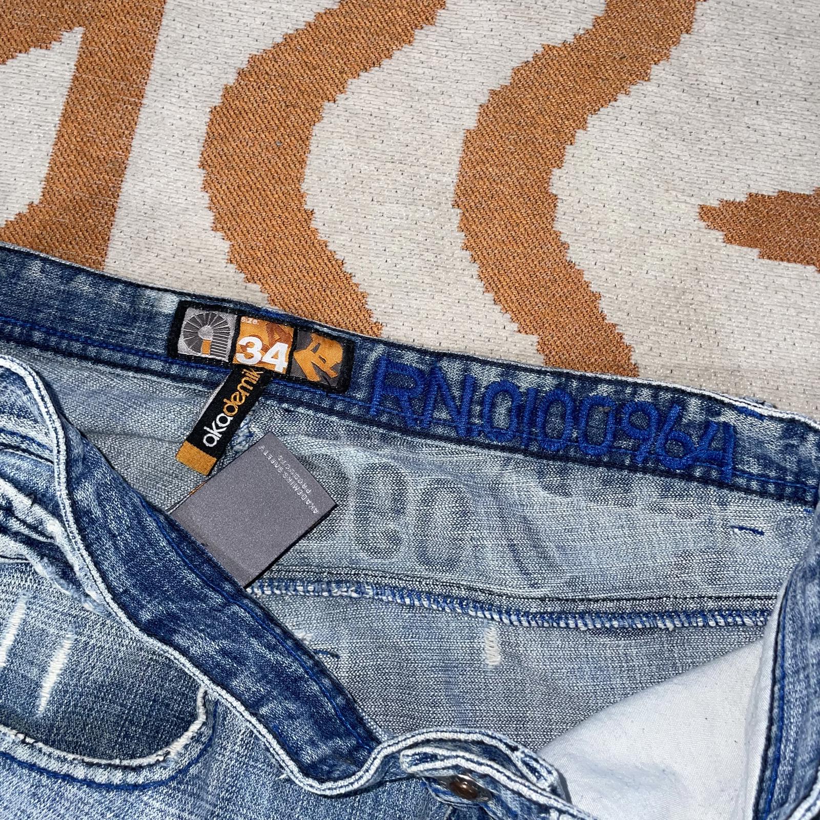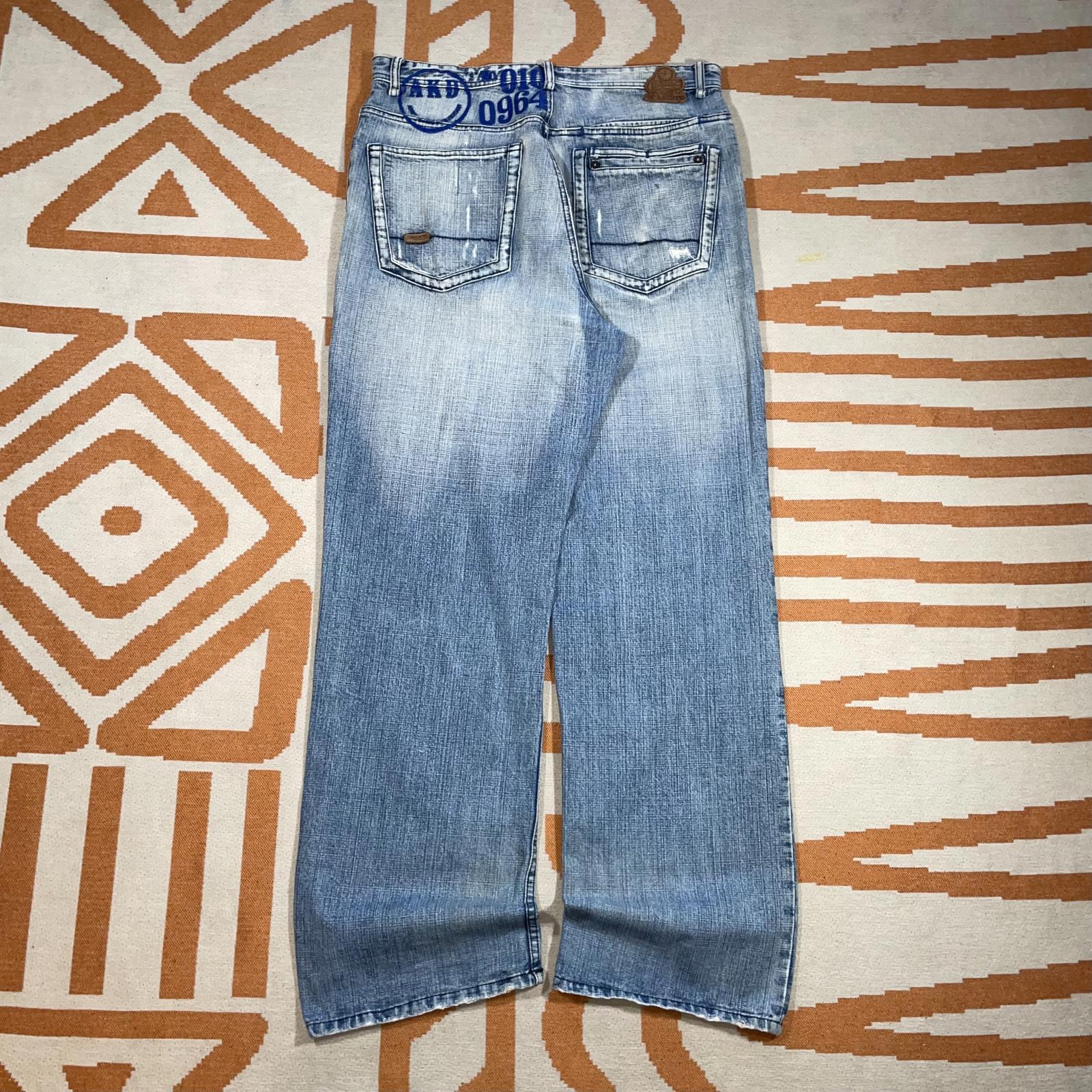 Akademiks 00s ‘Jeanius’ Printed Denim Blue Jeans 34x34