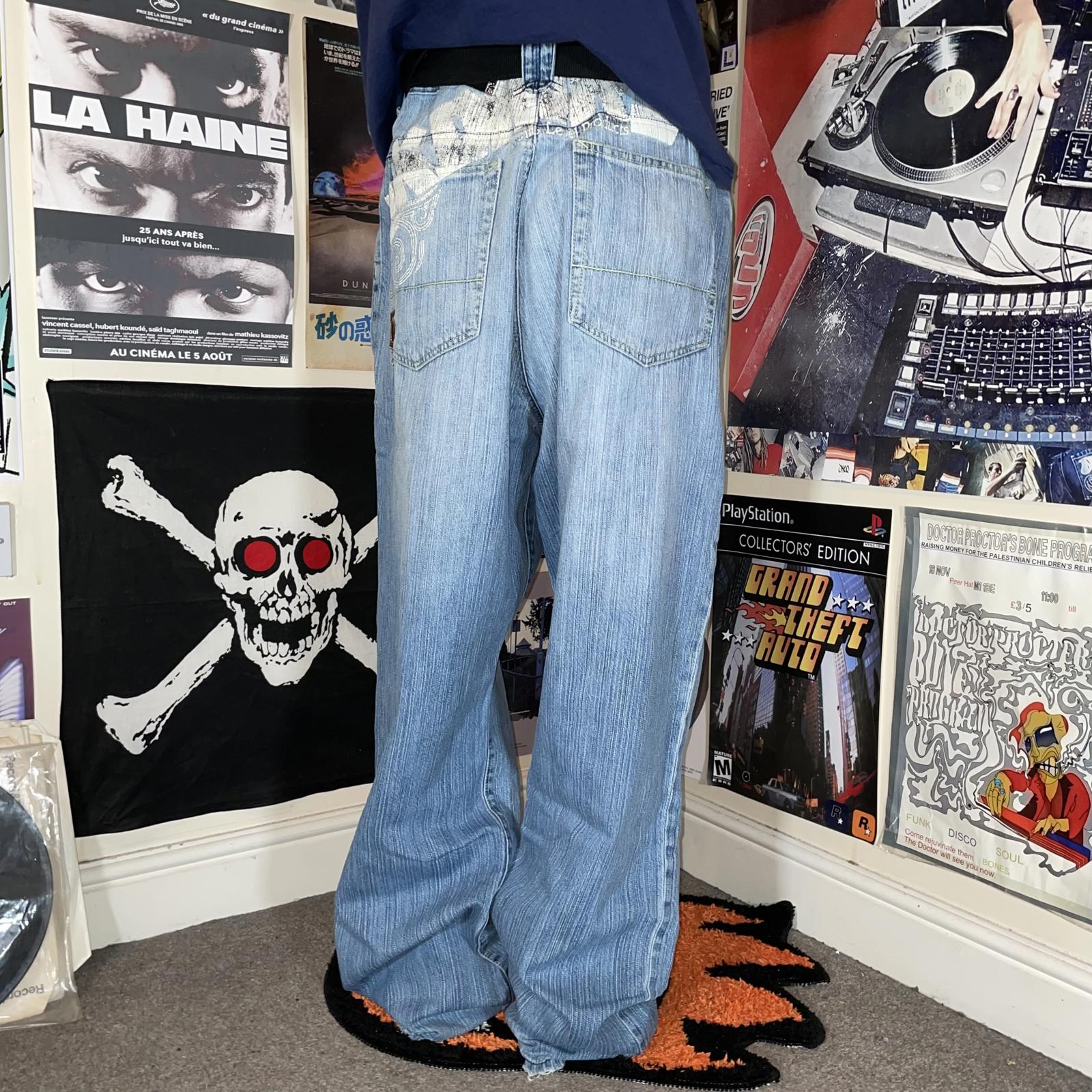 Akademiks 00s Printed ‘Warriors’ Baggy Blue Jeans 38x34