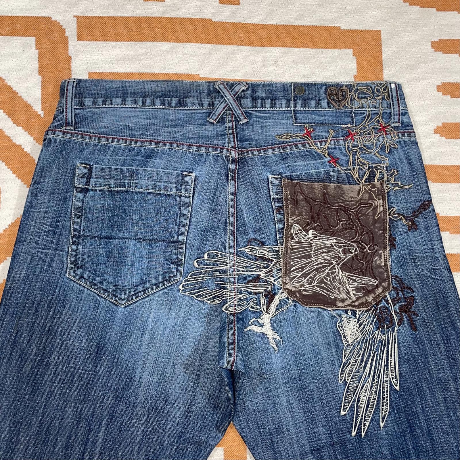Artful Dodger 00s Embroidered Falcon Baggy Blue Jeans 38x34