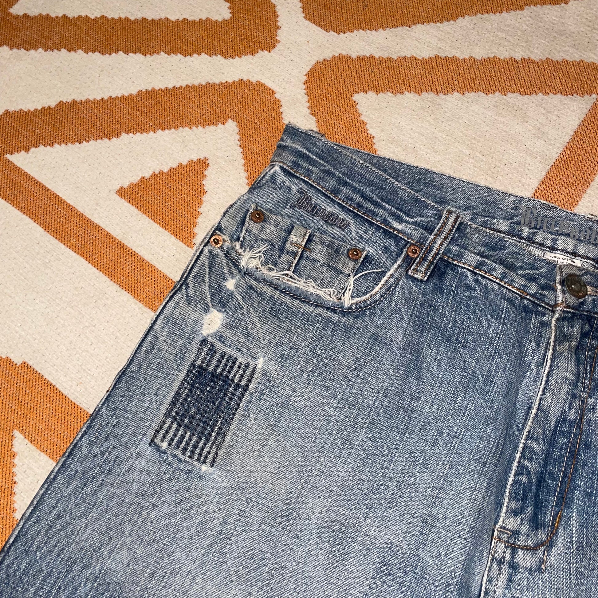 Size W34 L11. Leg opening 10”. Total length 21.5”.