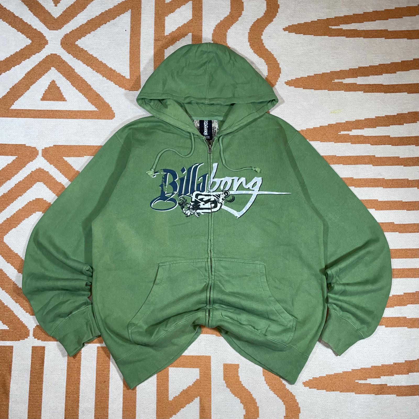 Billabong 00s Graphic Surf Green Zip Hoodie XL