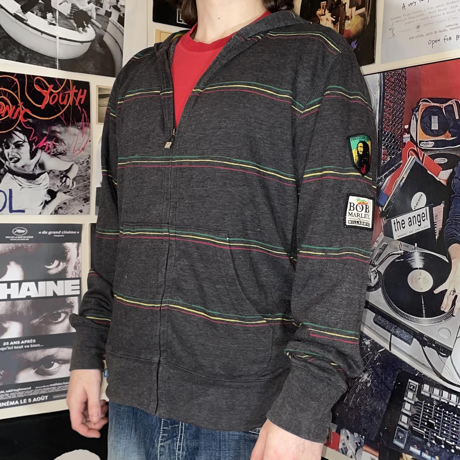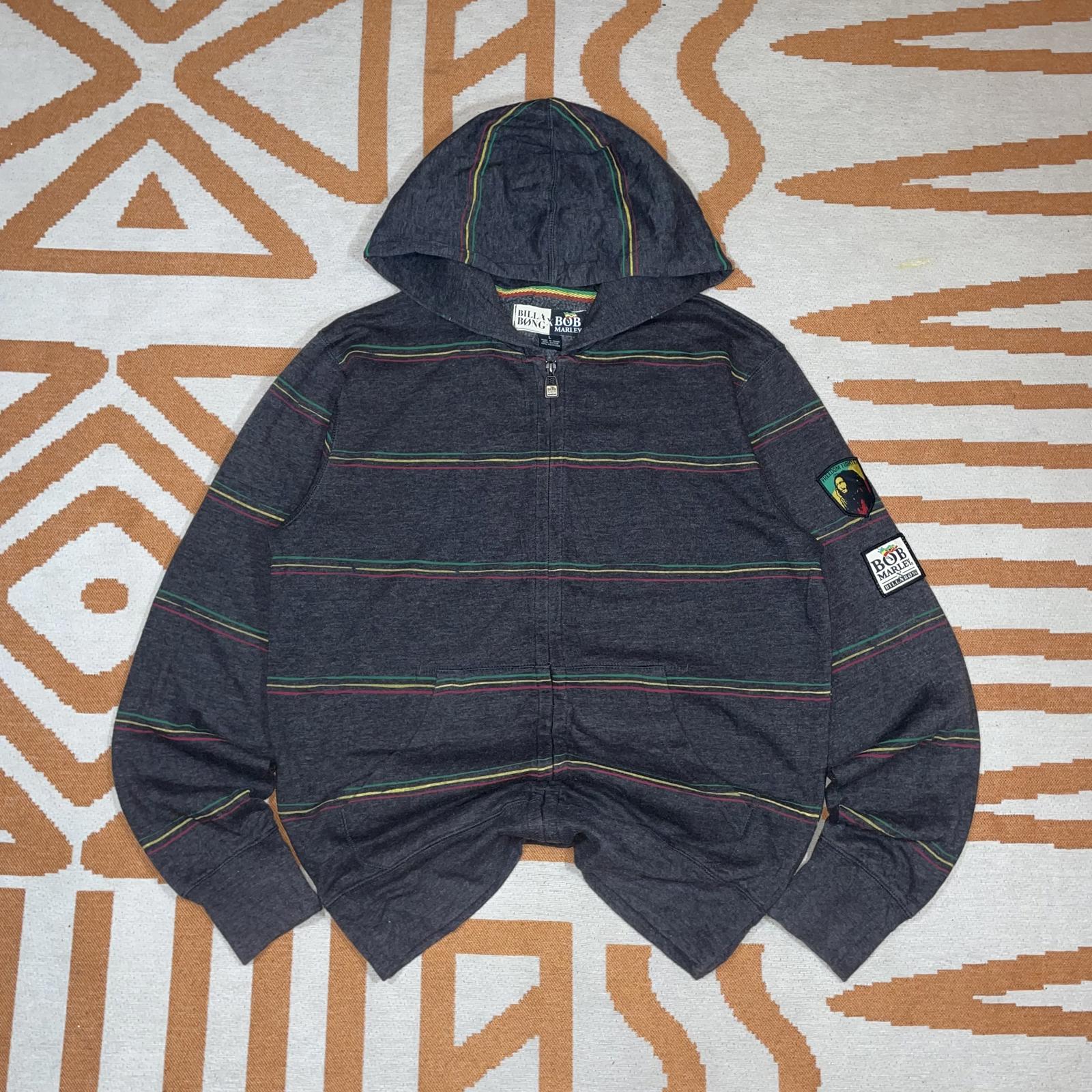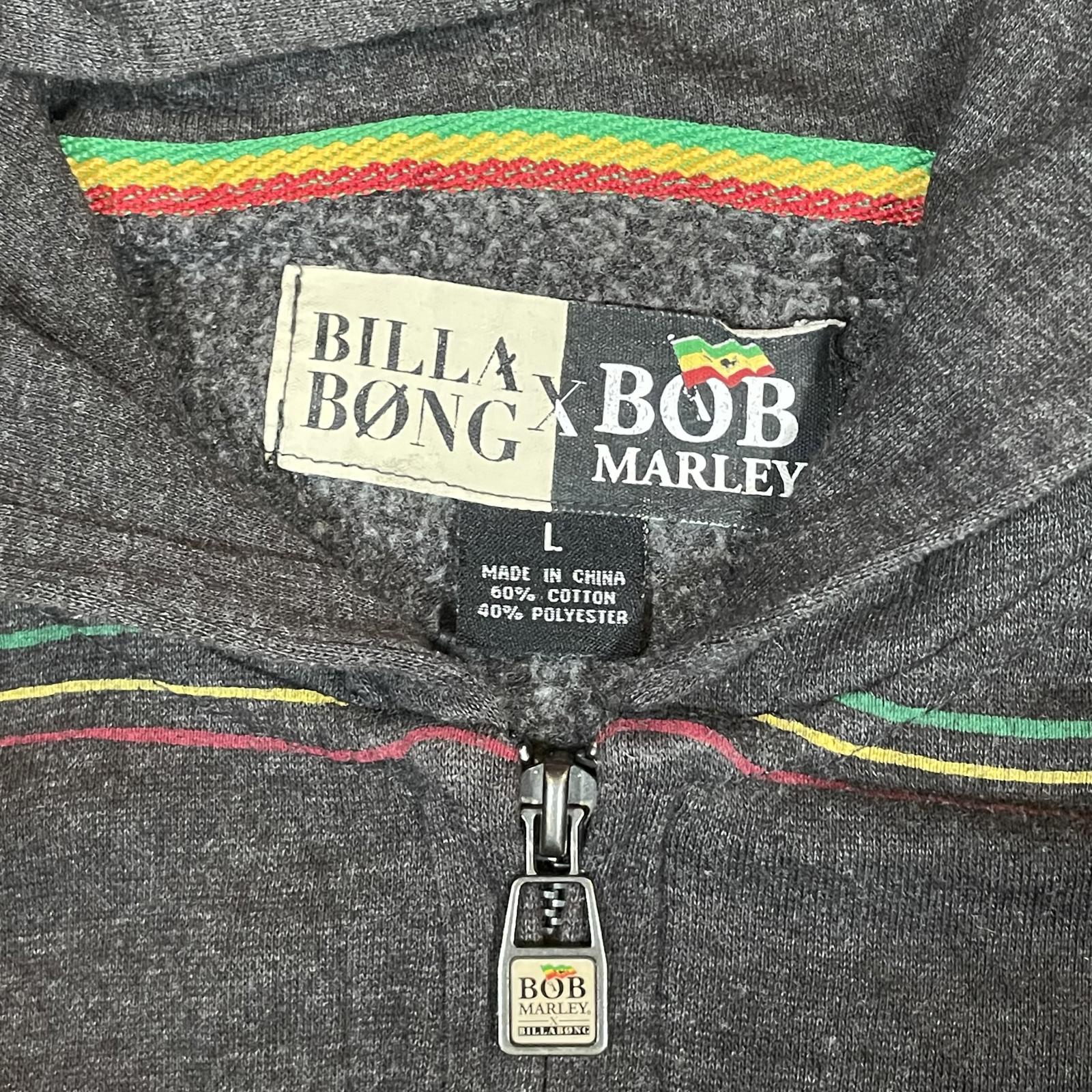 Billabong x Bob Marley 00s Striped Grey Reggae Zip Hoodie L