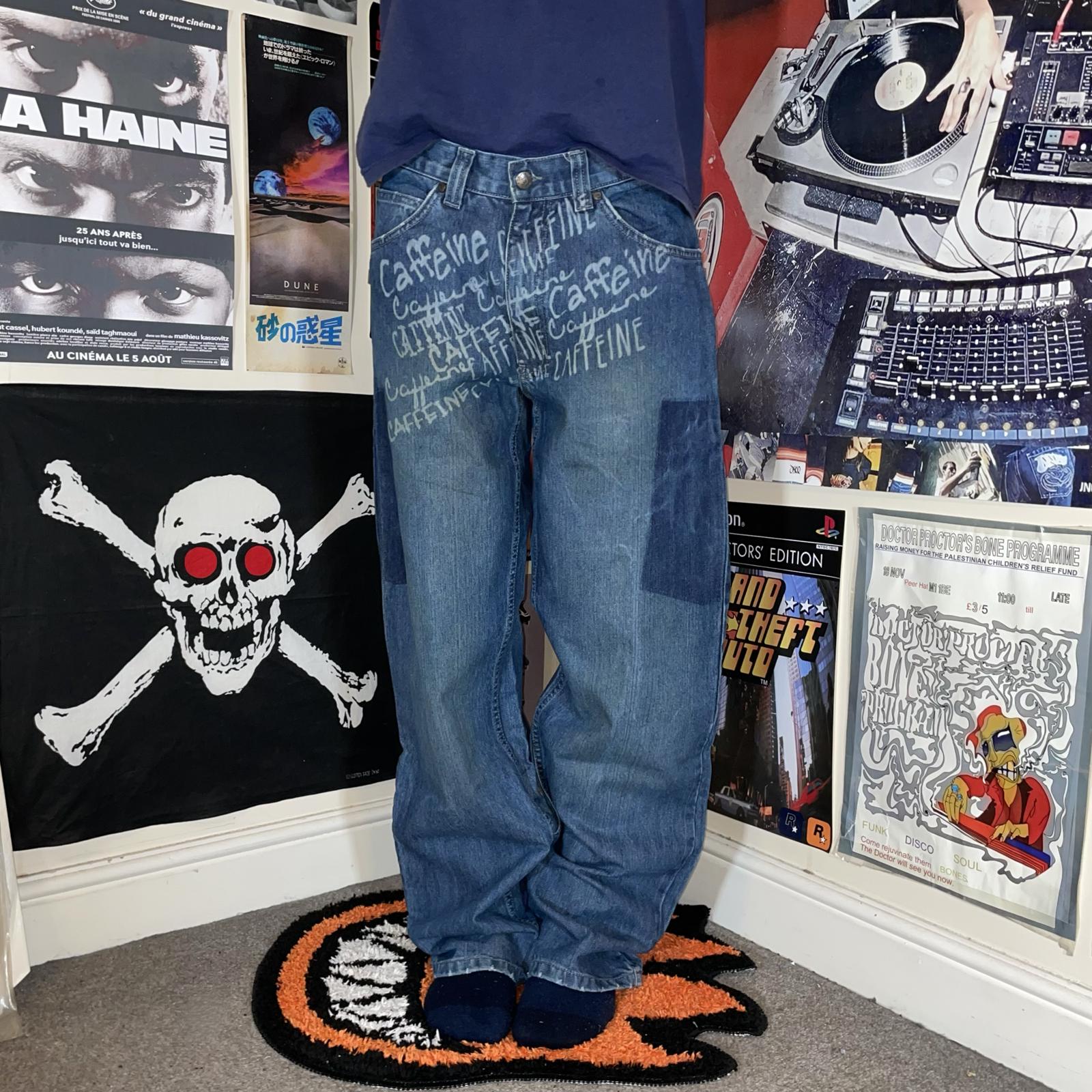 Caffiene 00s Printed Baggy Denim Jeans 32x32