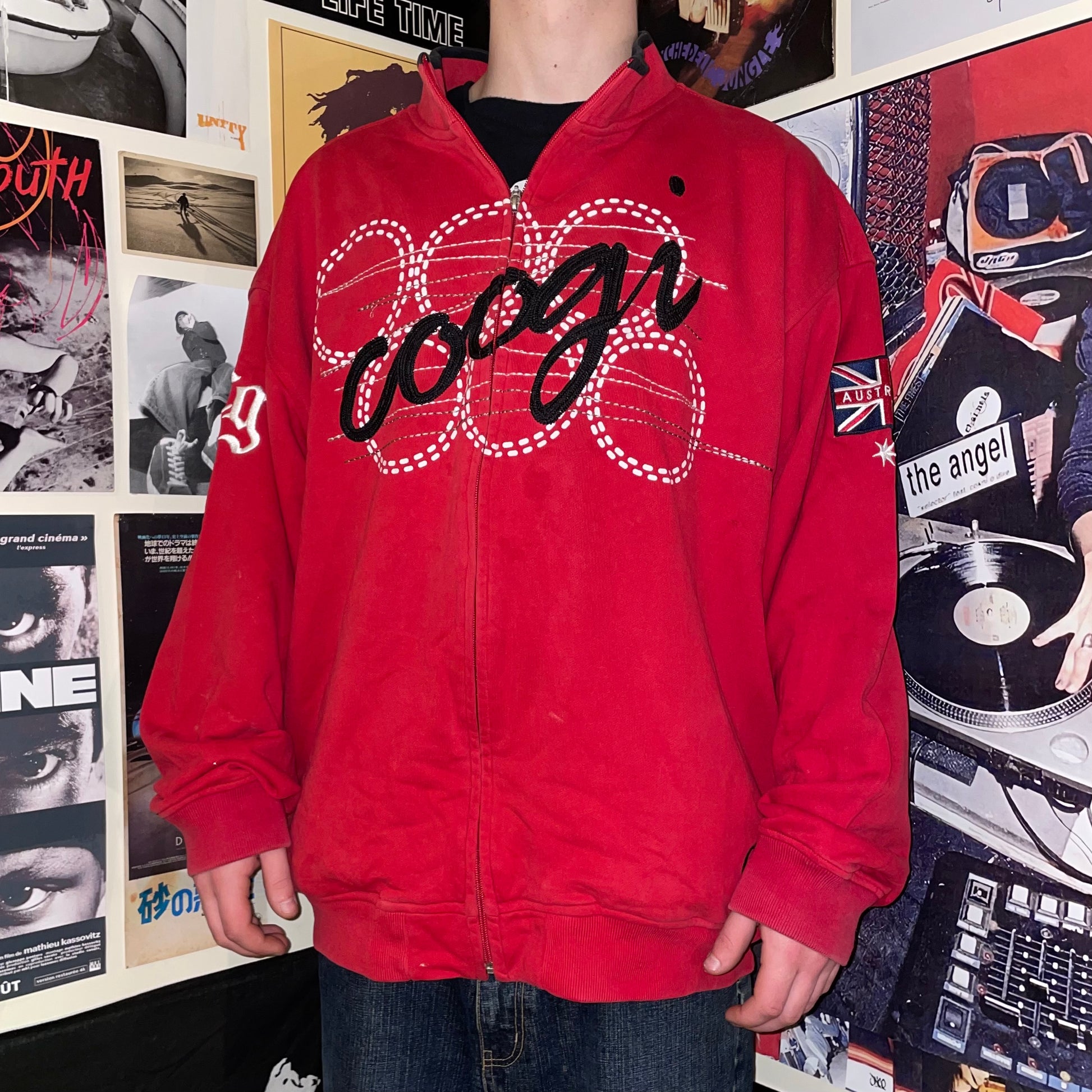 Cool 1990s Coogi zip jumper with embroidery over front/sleeves and baggy fit. Essential 90s streetwear.