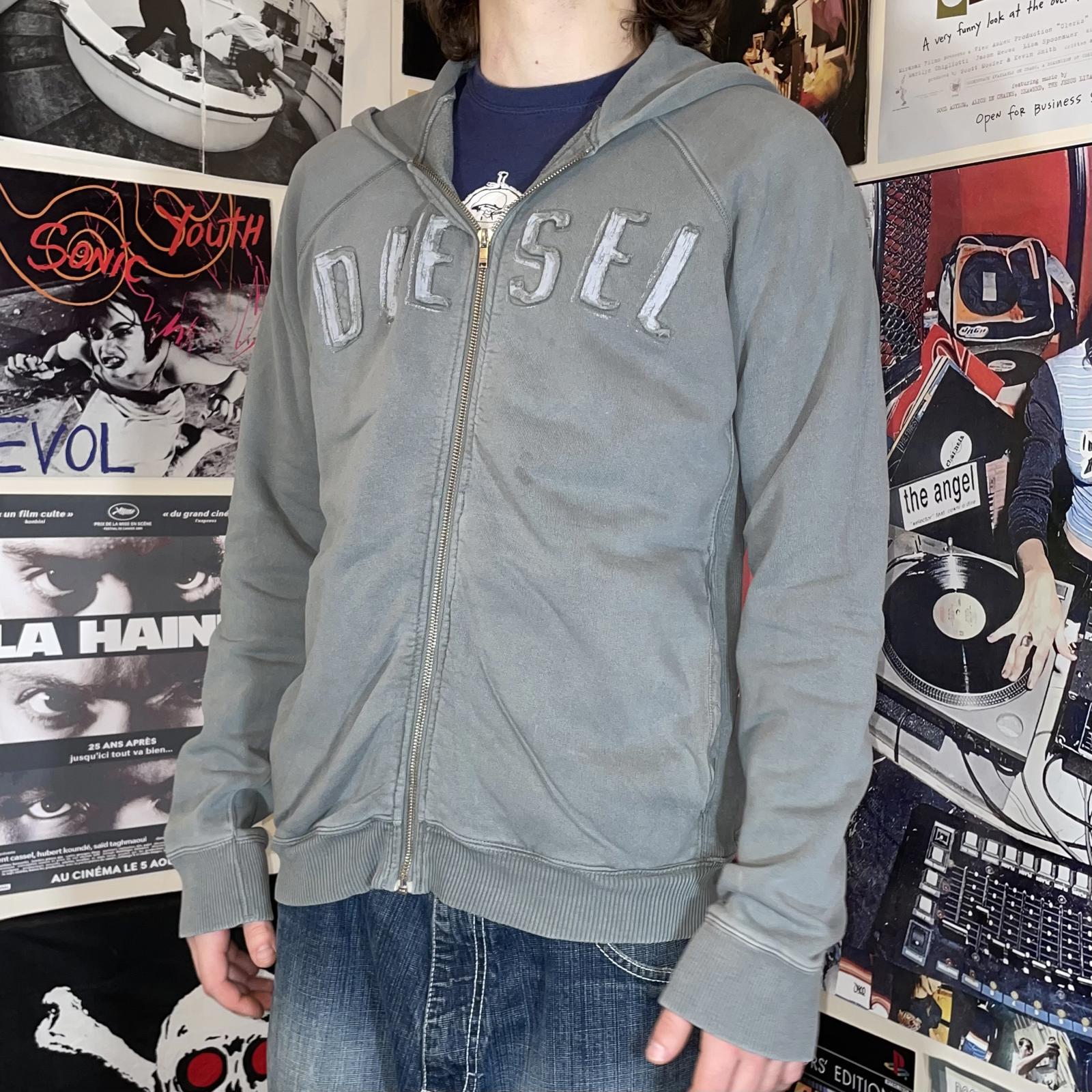 Diesel 00s Patched Spell-Out Grey Zip Hoodie L