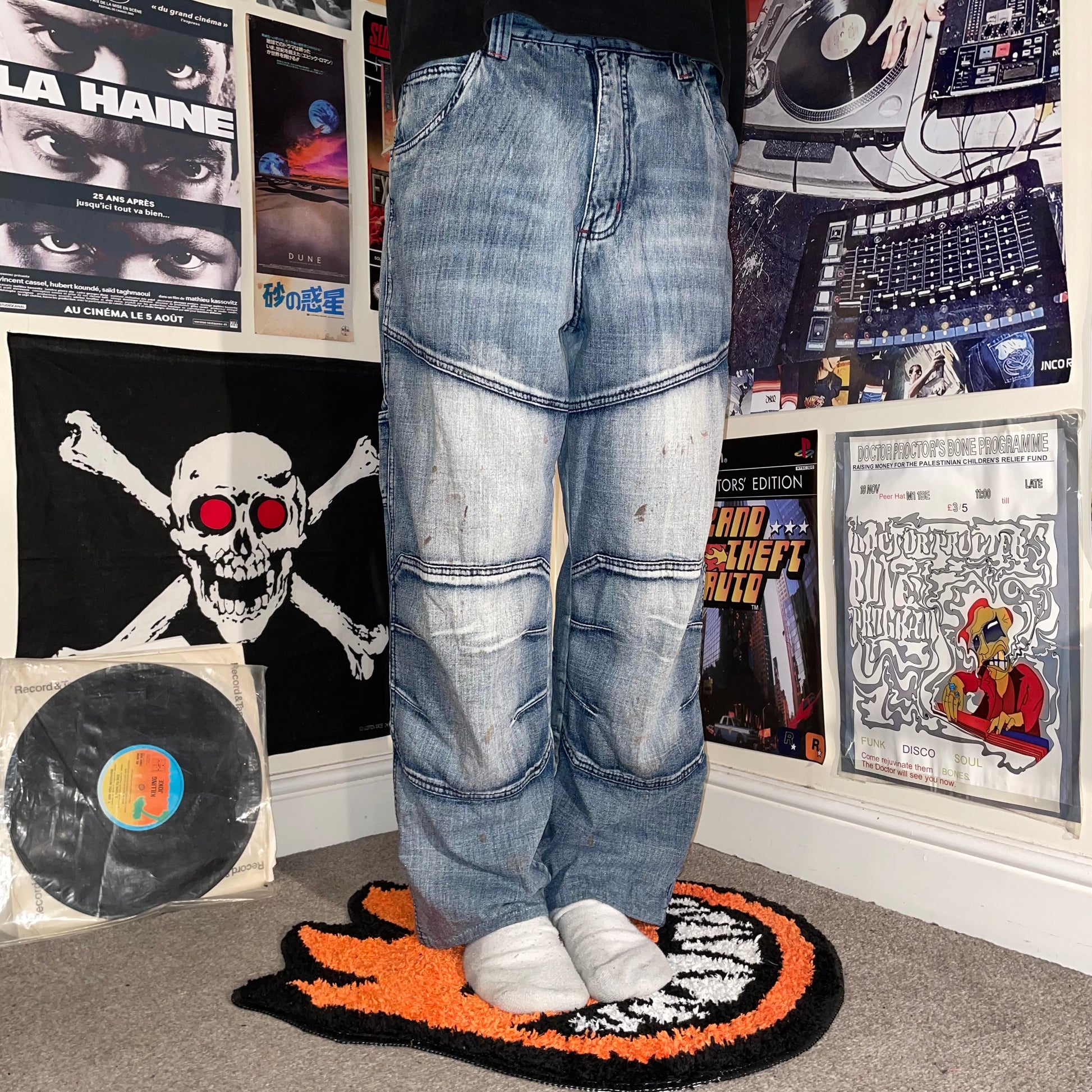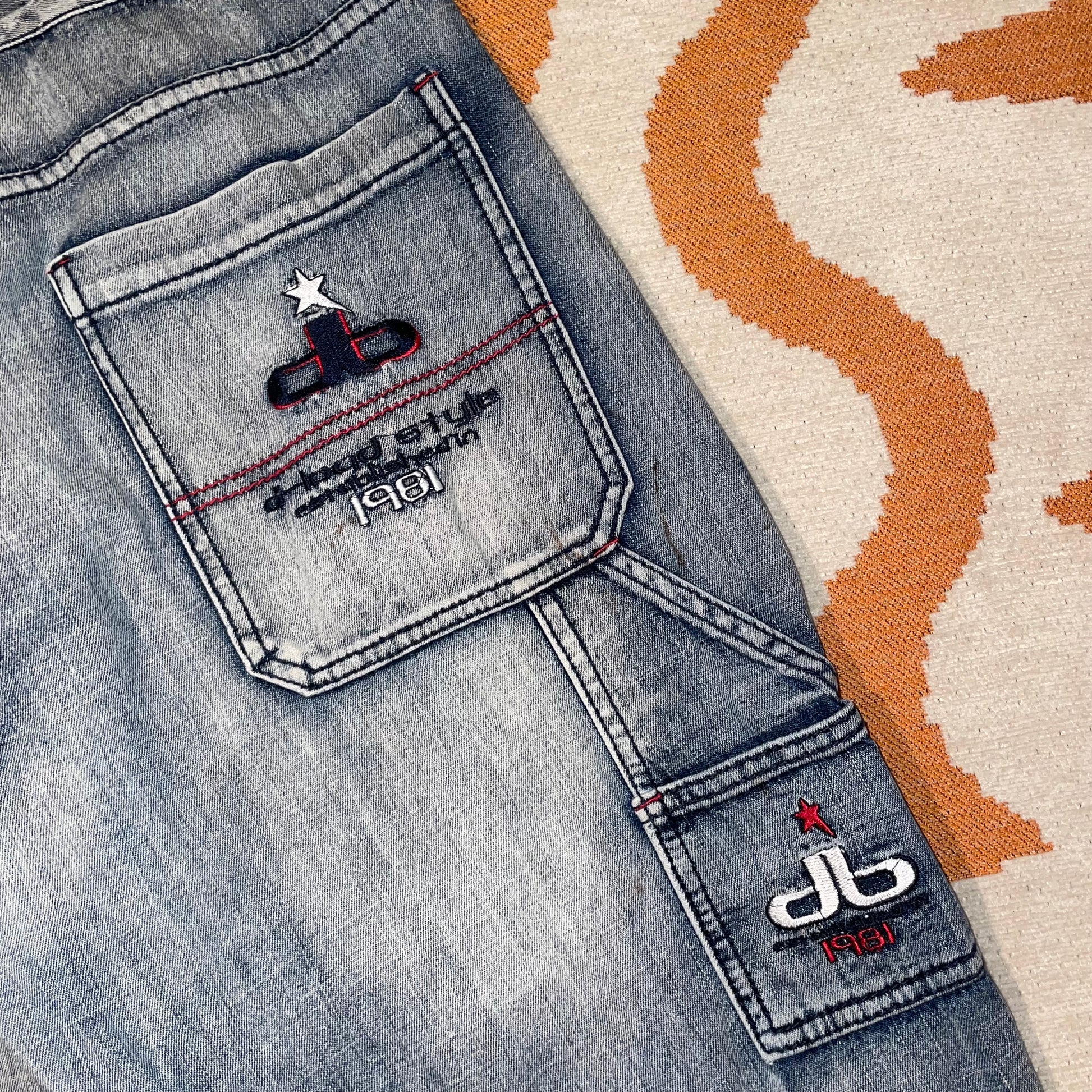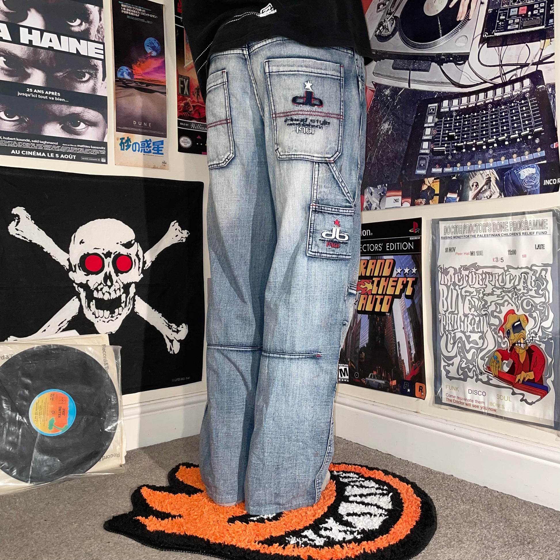 Nice 1990s Download carpenter jeans with embroidered back pocket and baggy/loose fit. Classic y2k streetwear.