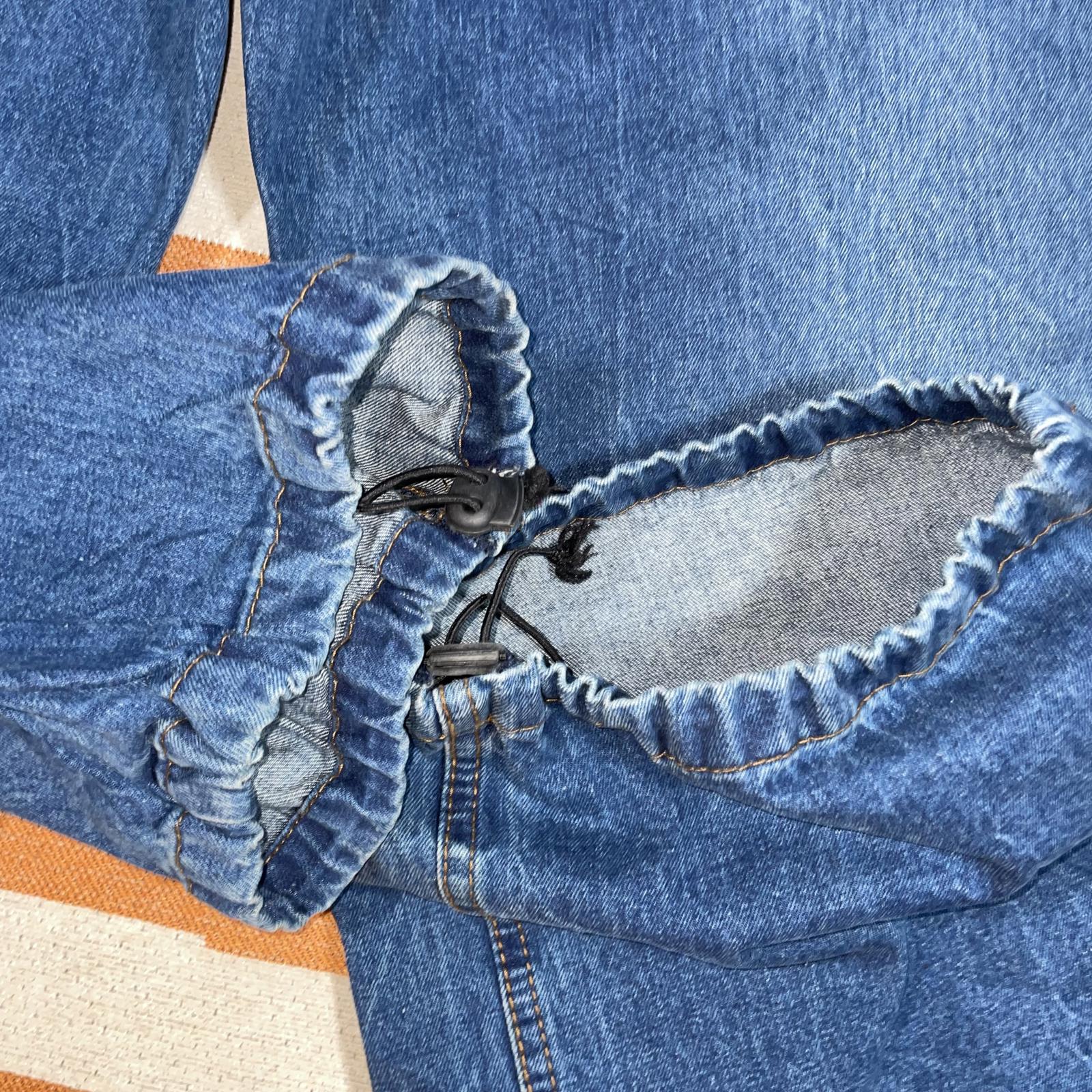 Measurements - Waist 38”. Leg Length 34”. Cuff 10”. Full Length 45.5”.
