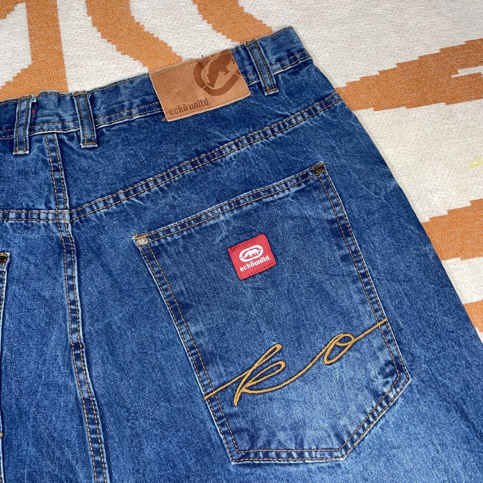 Ecko Unltd. 00s Embroidered Cursive Baggy Blue Jeans 38x34