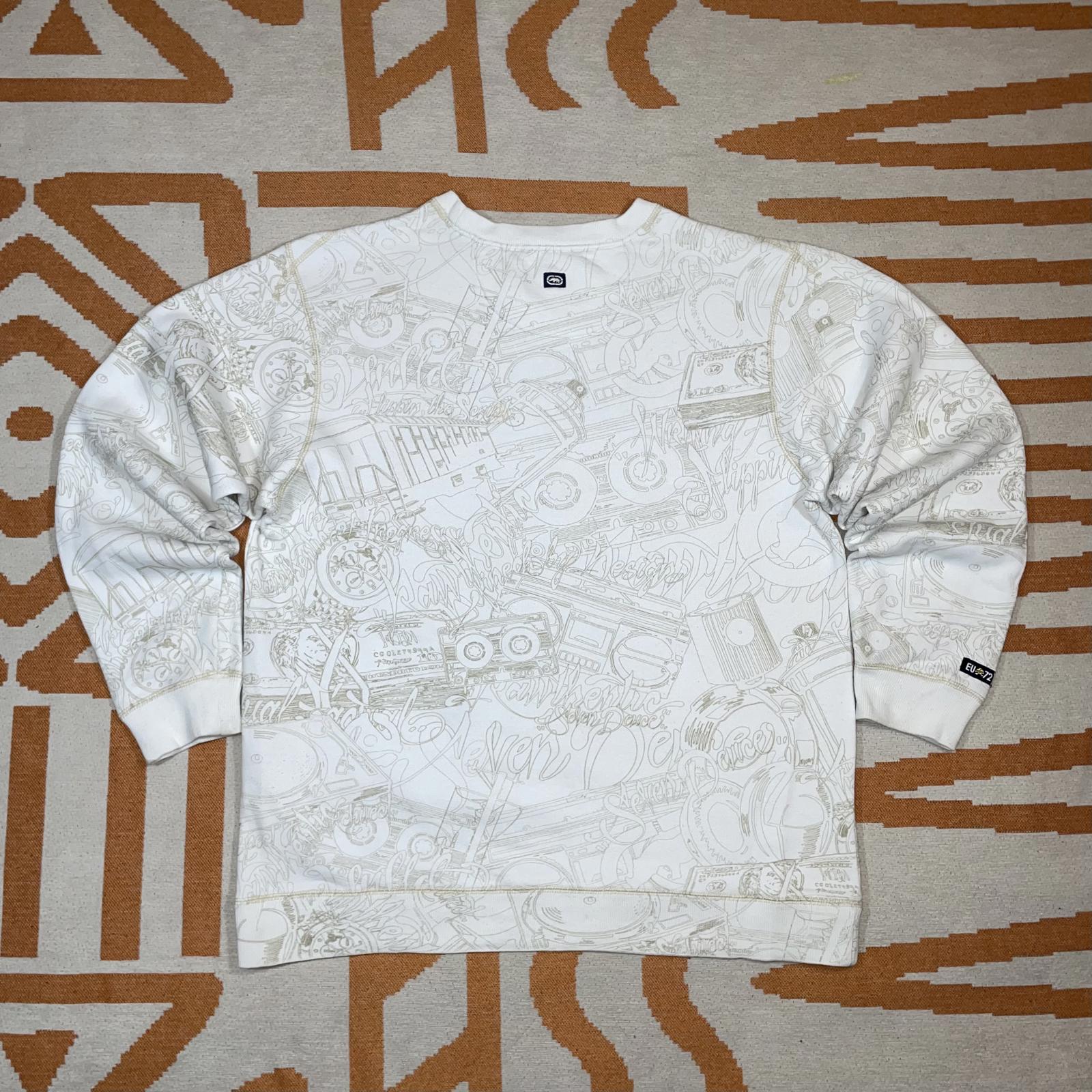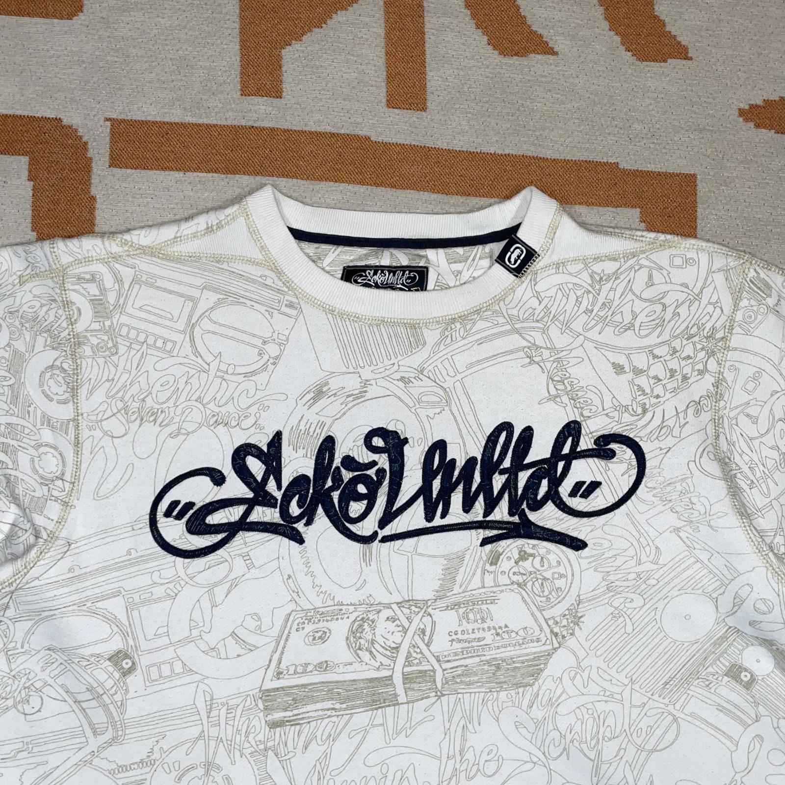 Ecko Unltd. 00s Hip Hop Embroidered Pattern White Sweatshirt XL