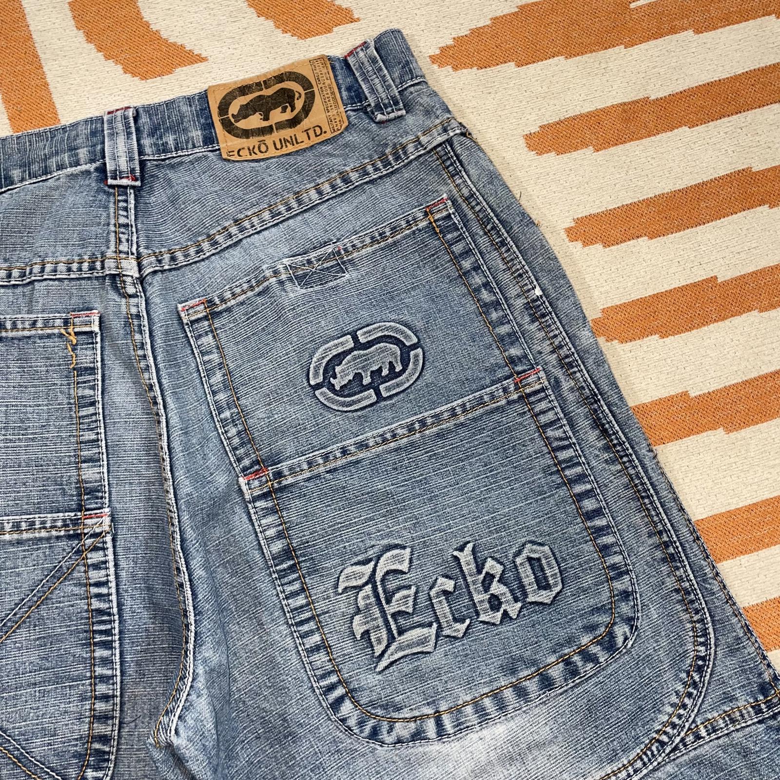 Ecko Unltd. 00s Rhino Imprint Baggy Denim Blue Jeans 32x33