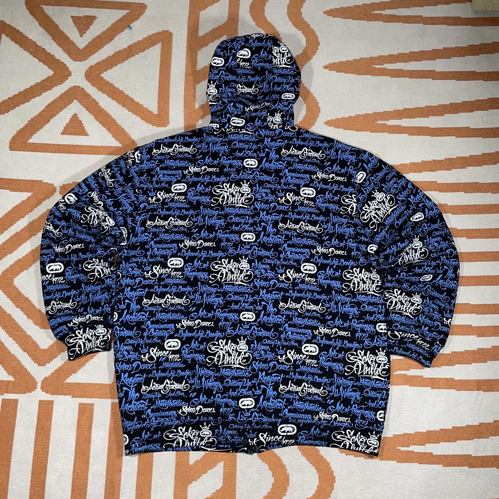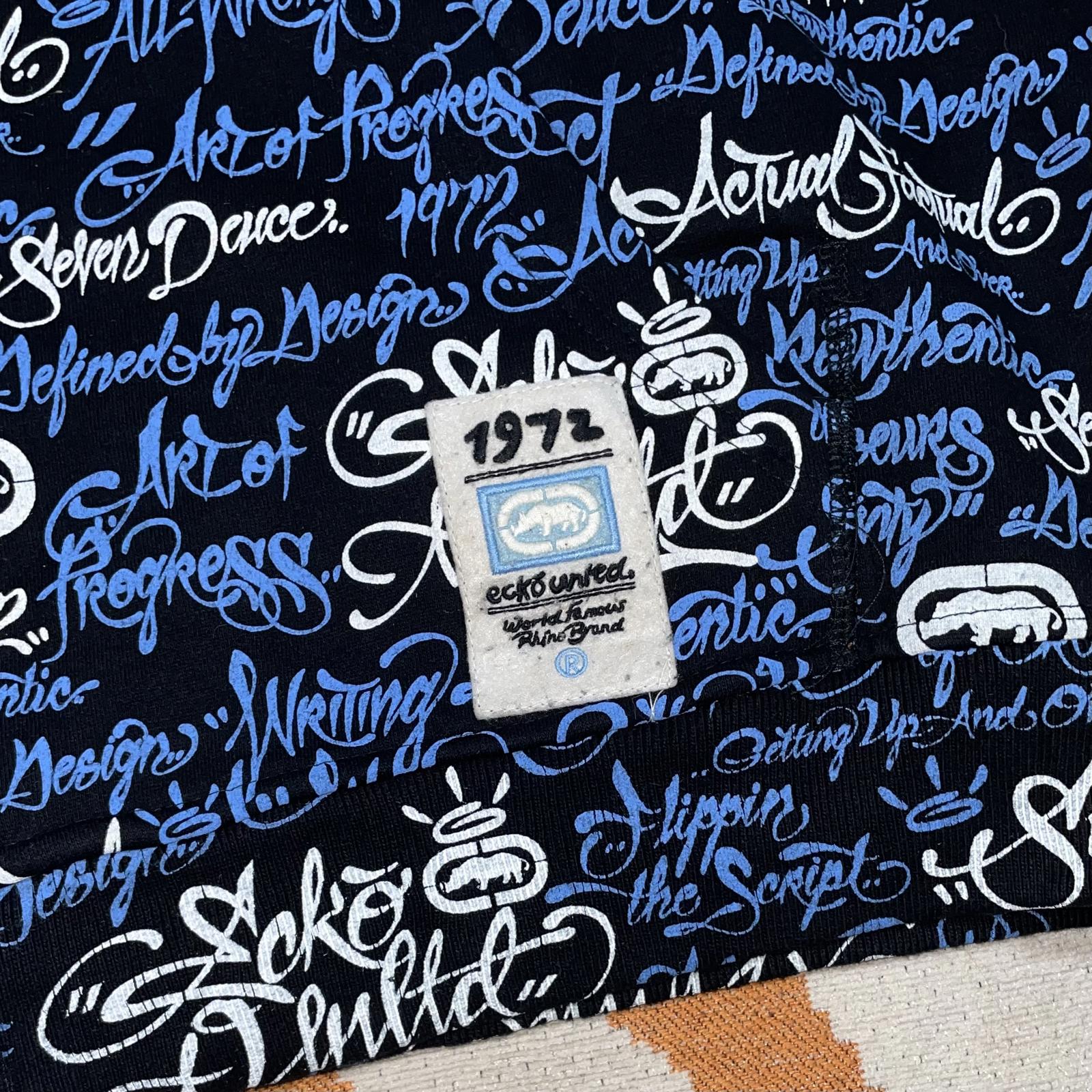Ecko Unltd. 90s Handstyle Pattern Print Zip Black/Blue Hoodie XXL