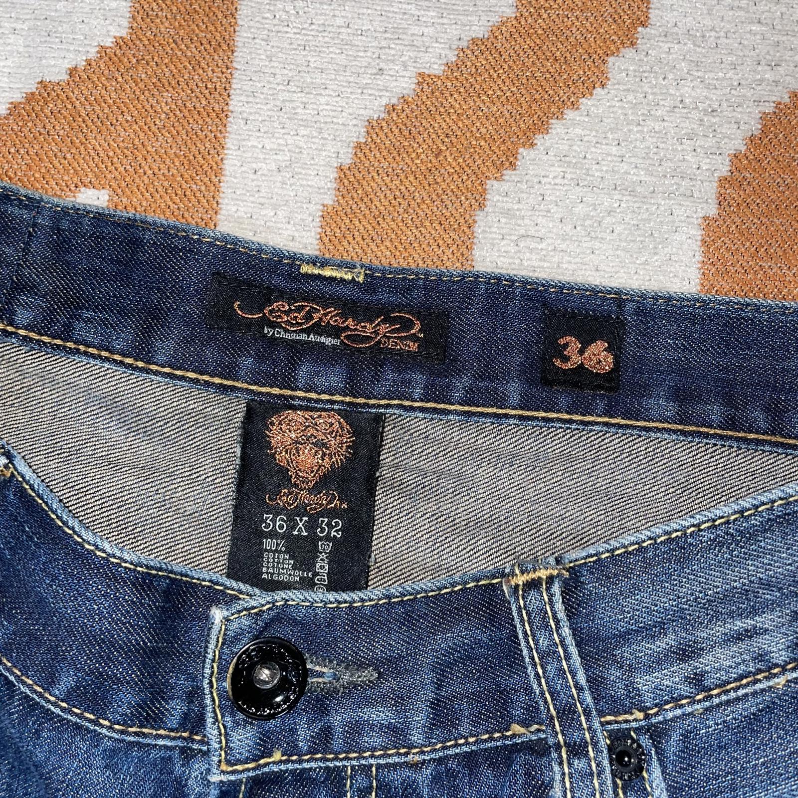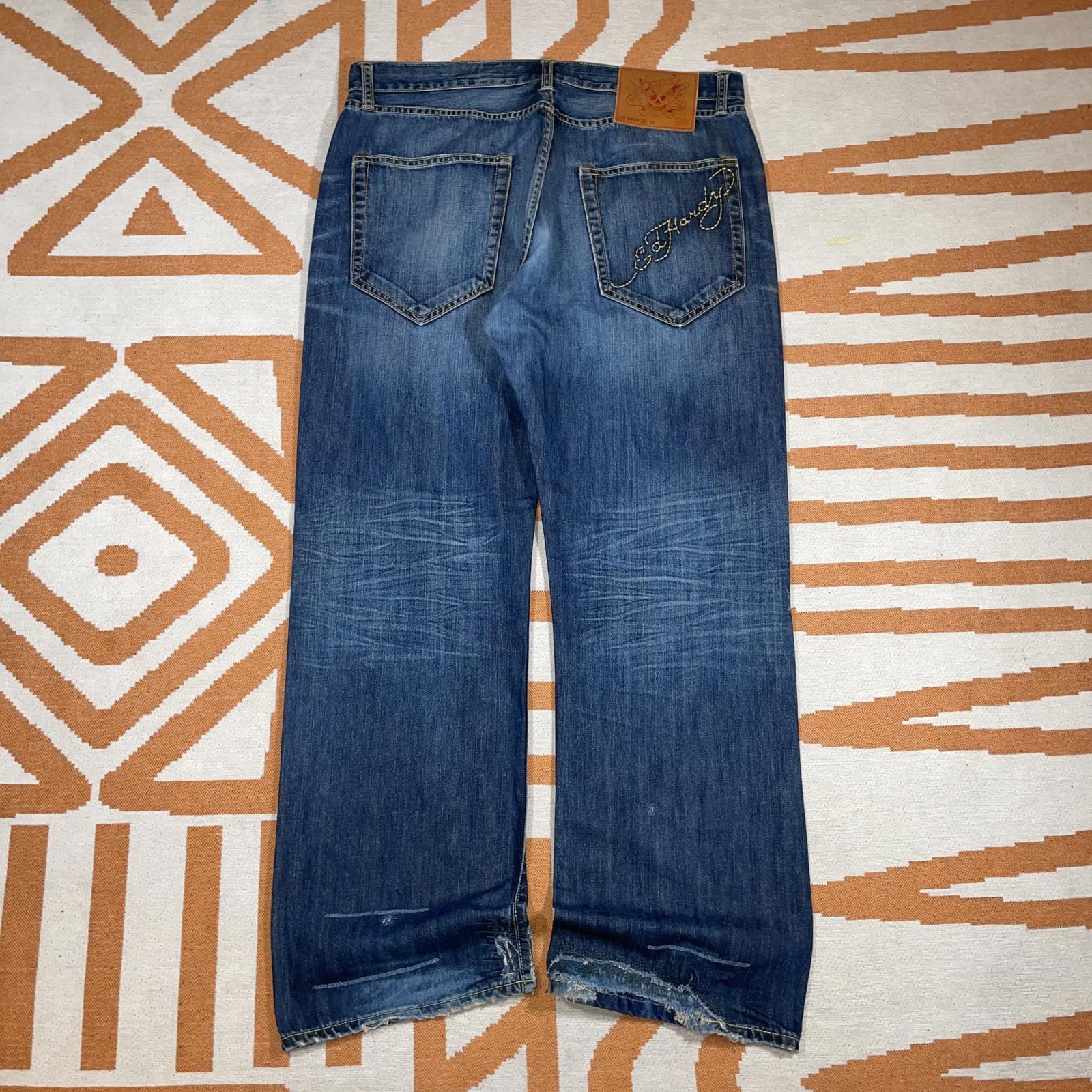Ed Hardy 00s Embroidered Baggy Blue Denim Jeans 36x34