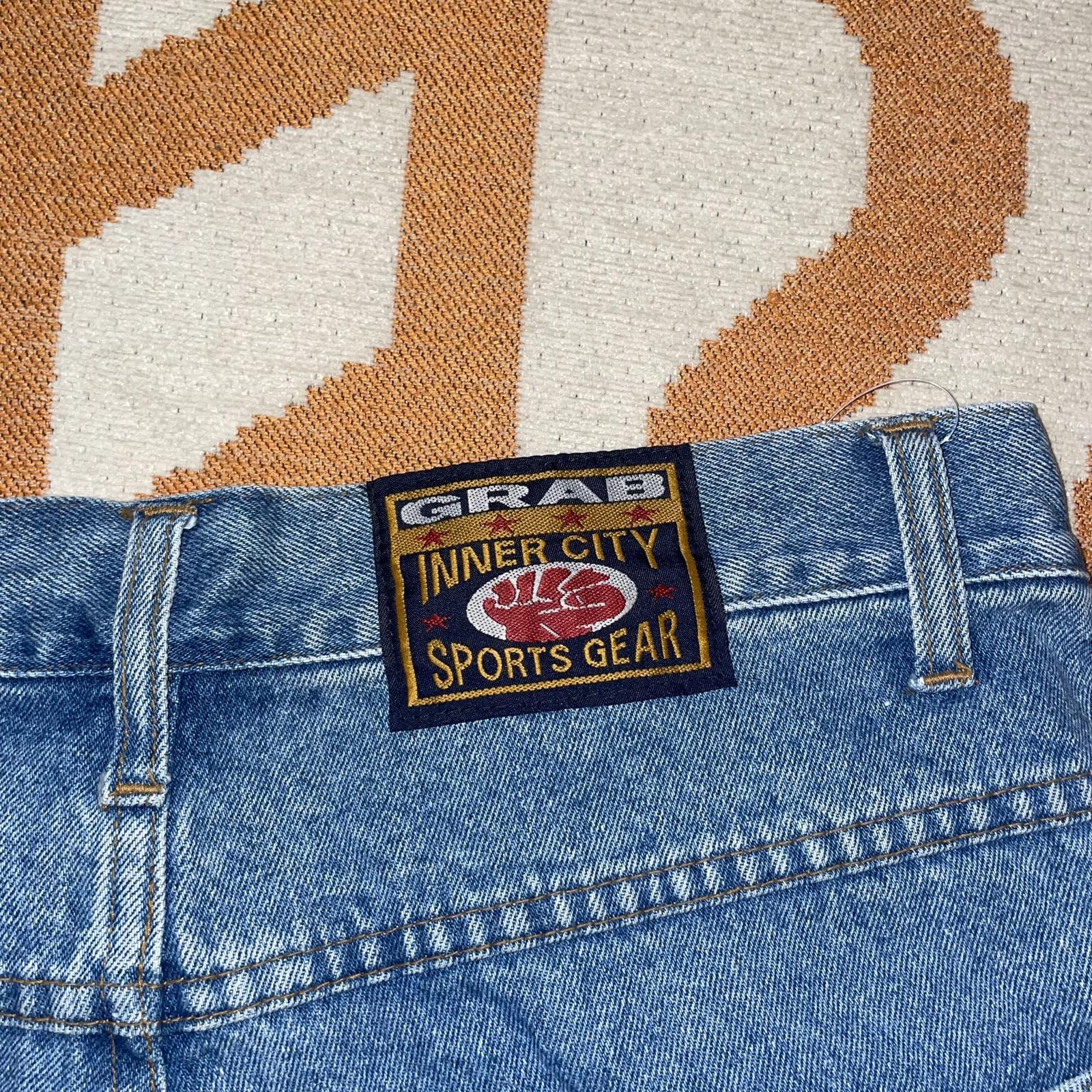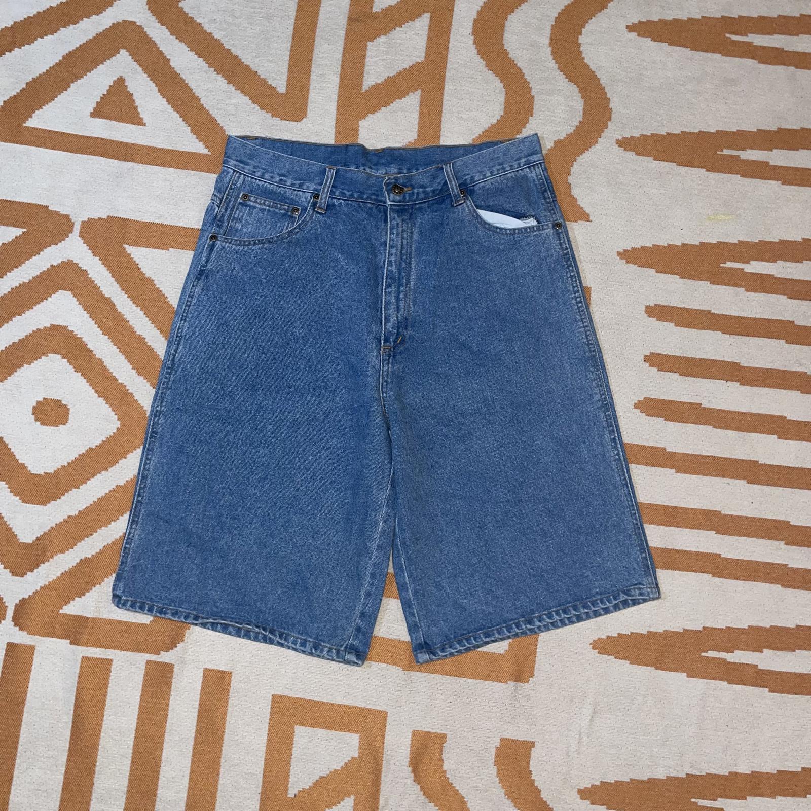 -Size W34 L12.5. Leg width 13“. Full length 25.5“.