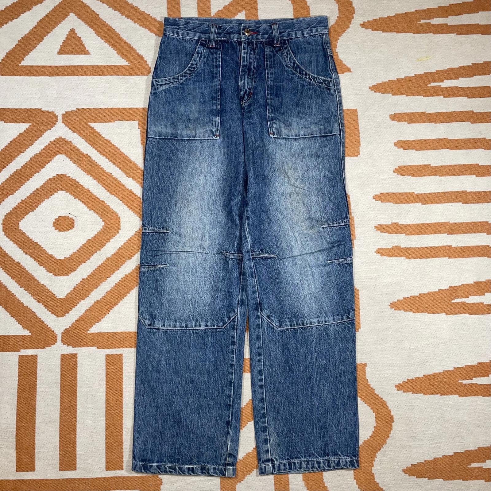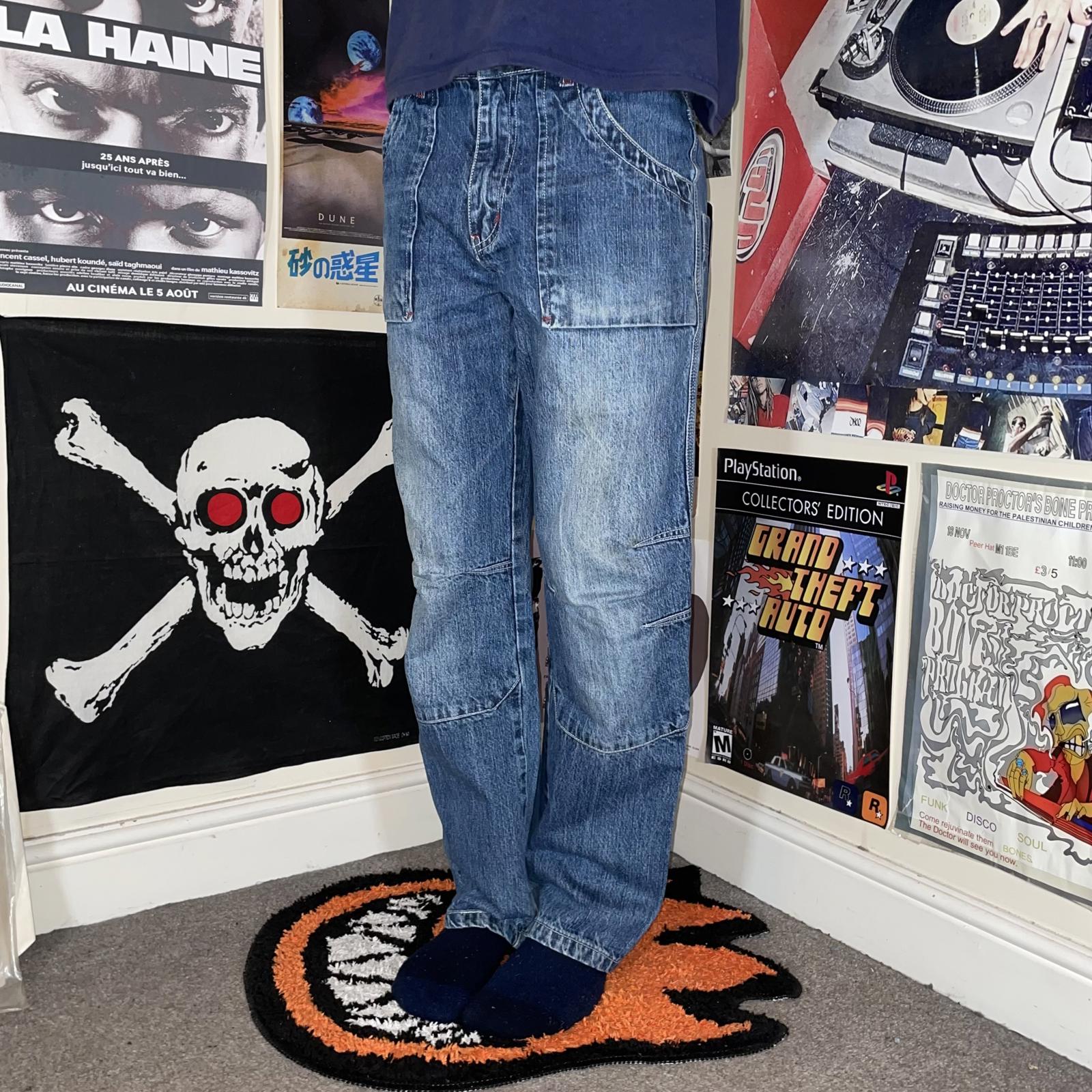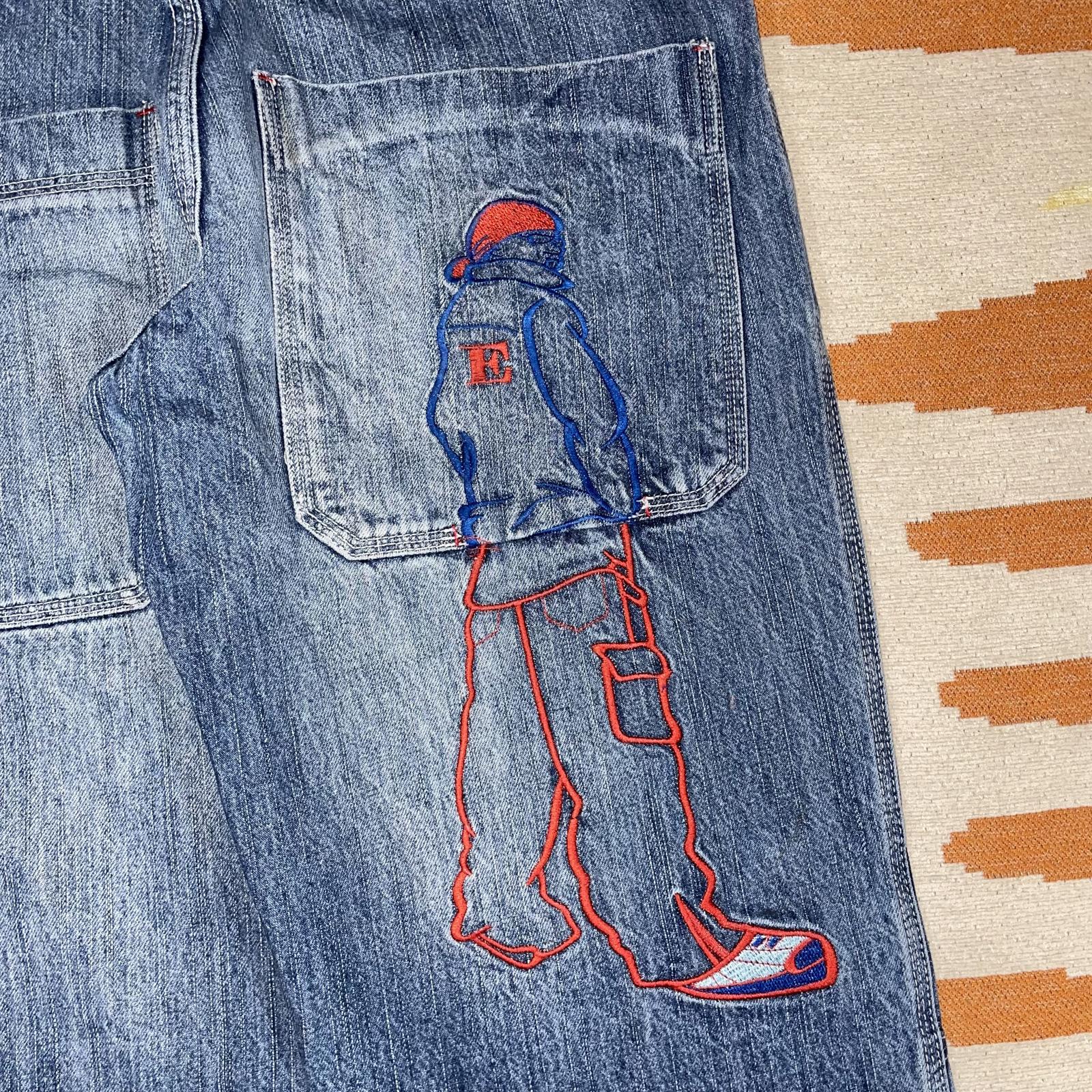 Hip Hop 00s Embroidered Character Blue Denim Jeans 28x30