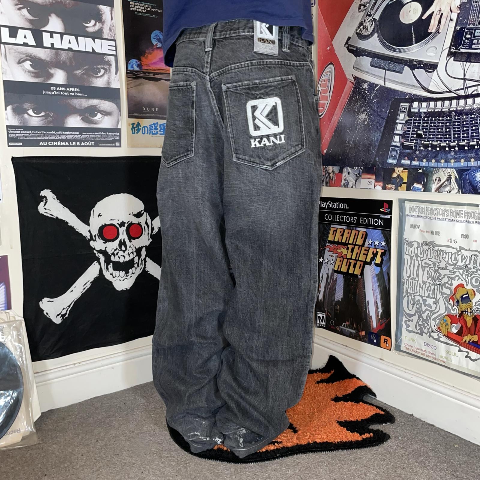 Karl Kani 00s Embroidered Grey Denim Jeans 34x34