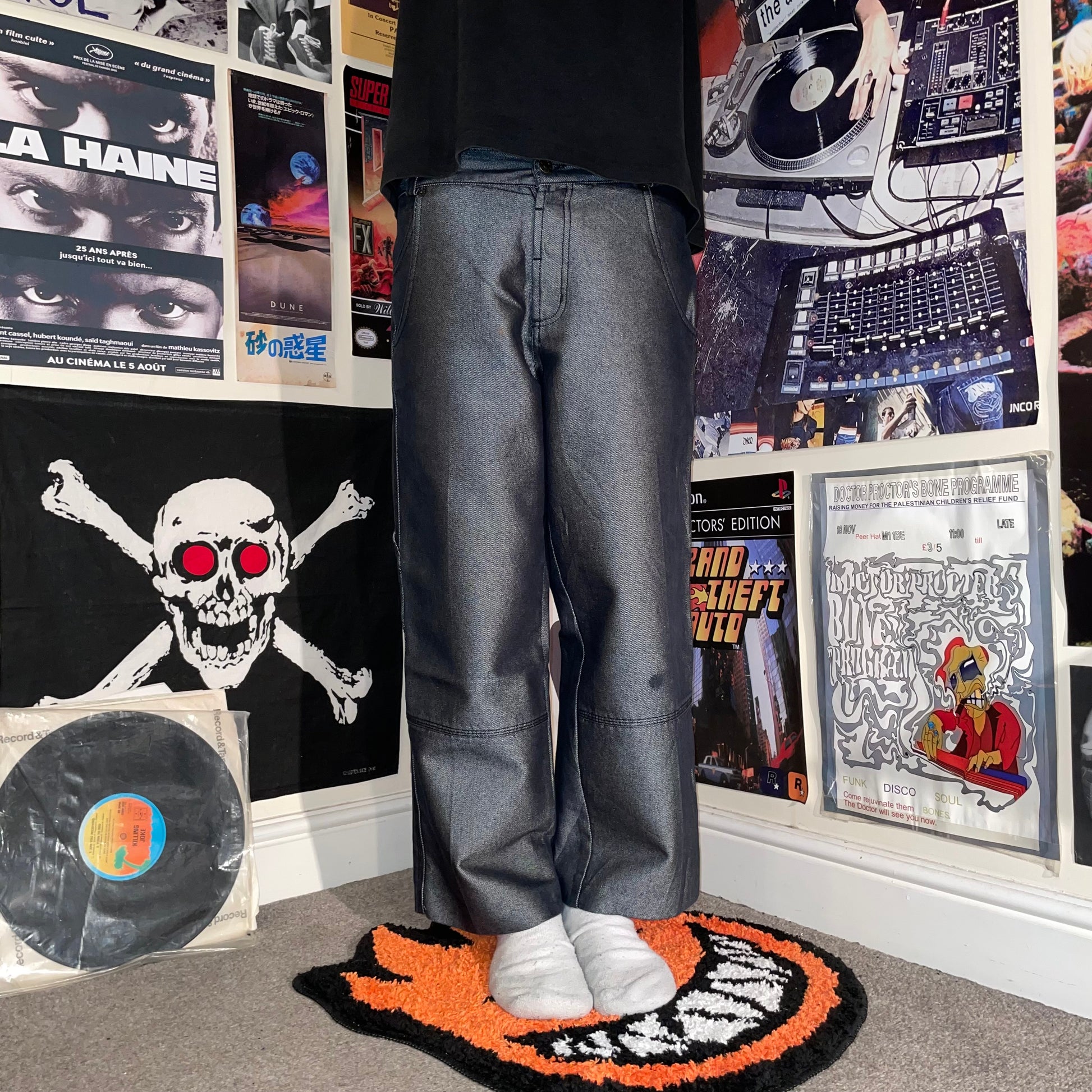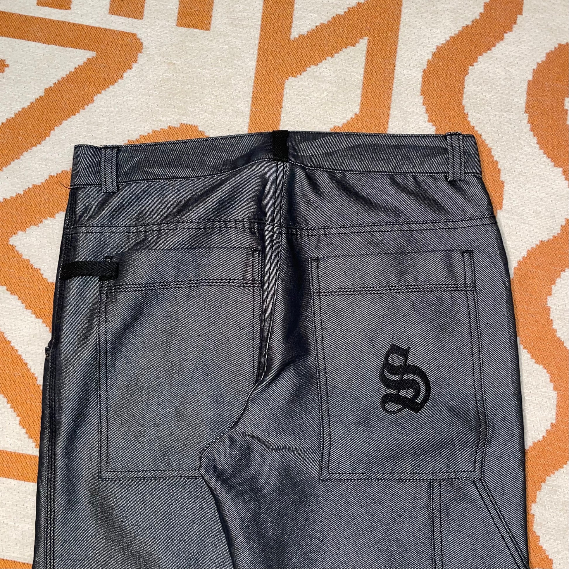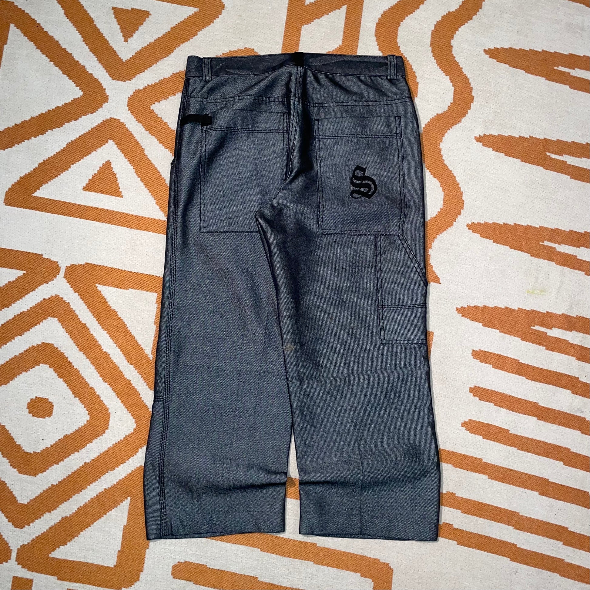 Cool 2000s Kiabi Casual jeans with embroidered ‘S’ insignia on back pocket, reflective denim construction and baggy fit.