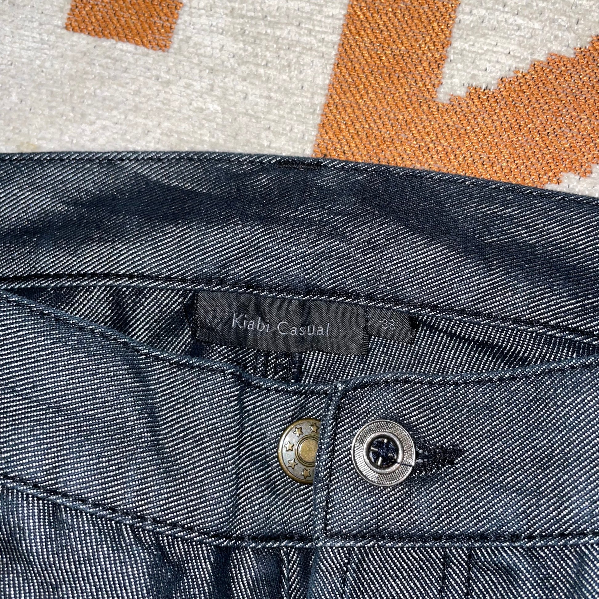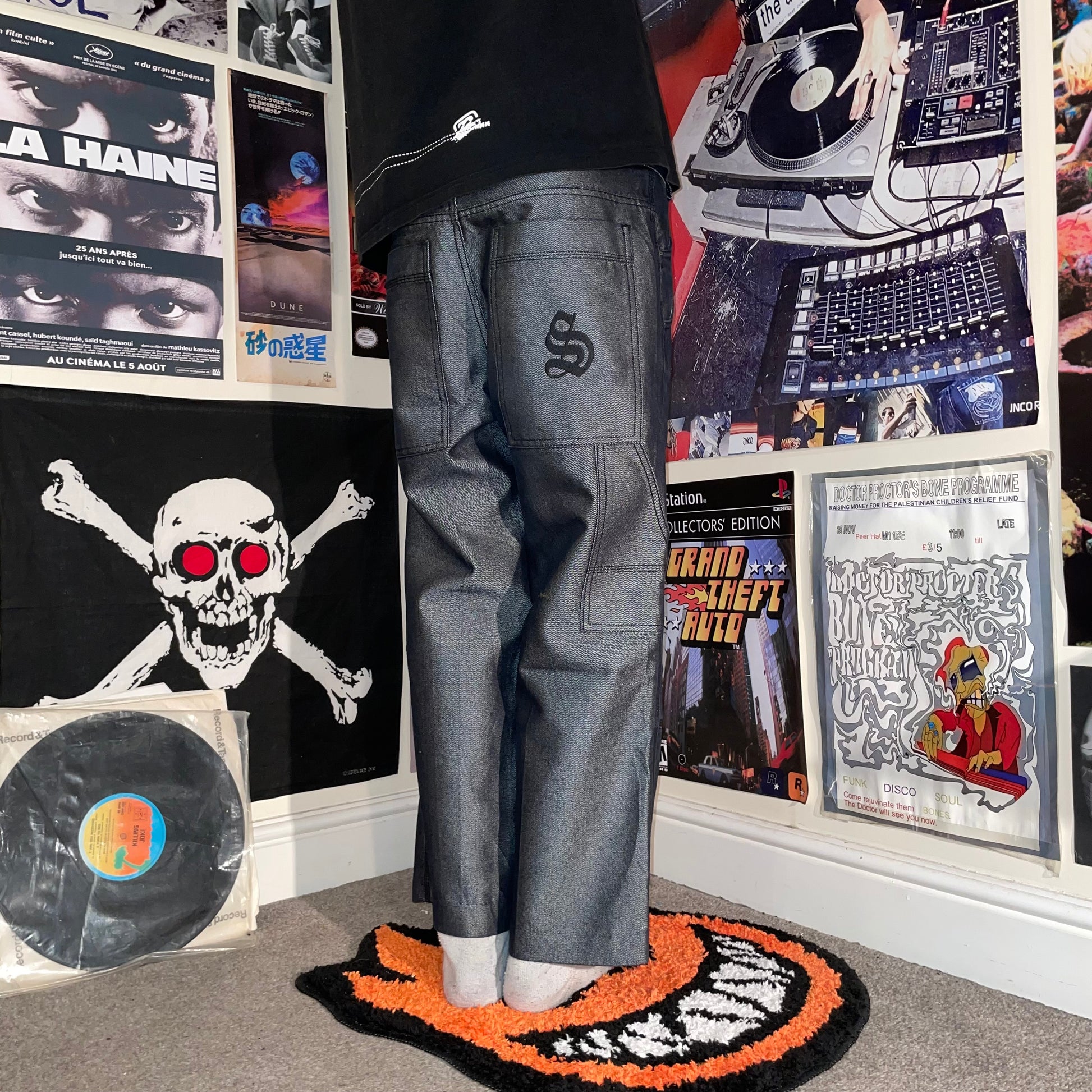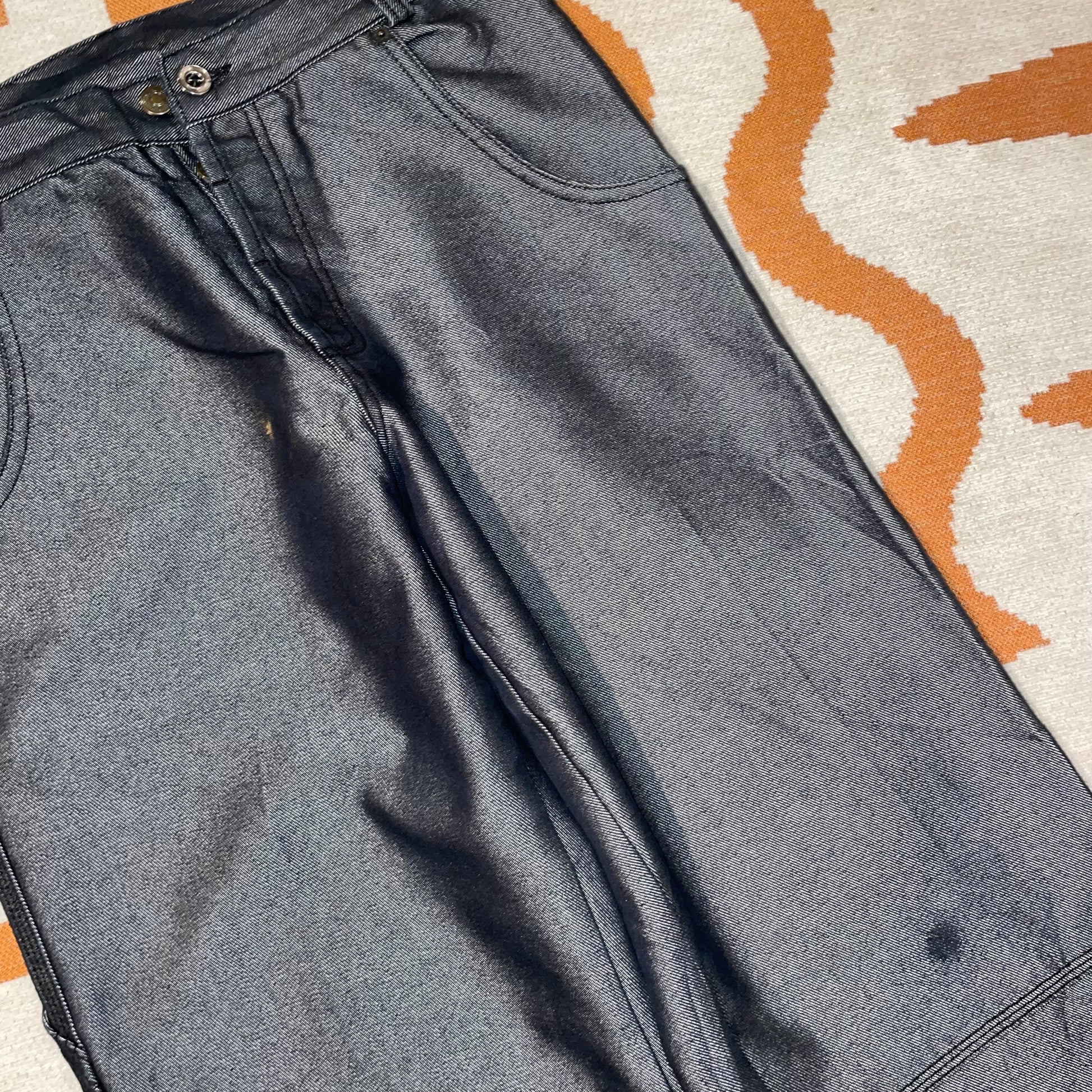 Cool 2000s Kiabi Casual jeans with embroidered ‘S’ insignia on back pocket, reflective denim construction and baggy fit.