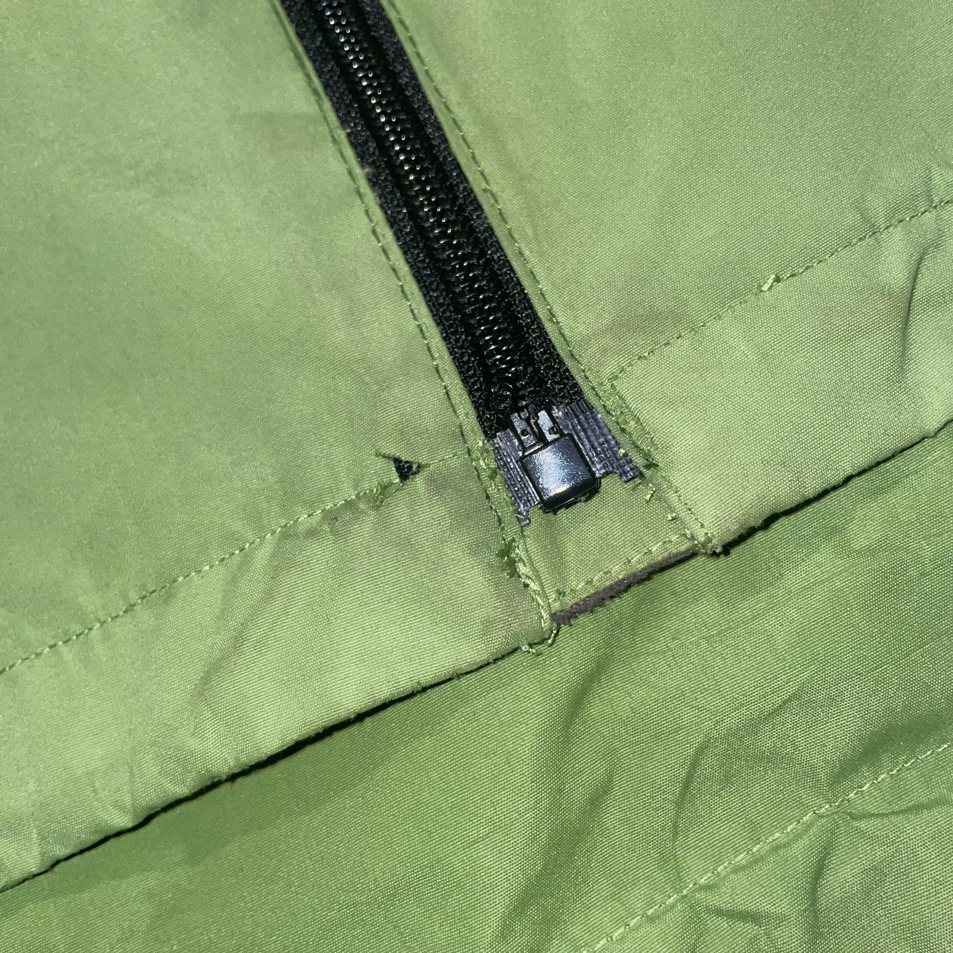 Good used condition. Tiny hole by zipper.