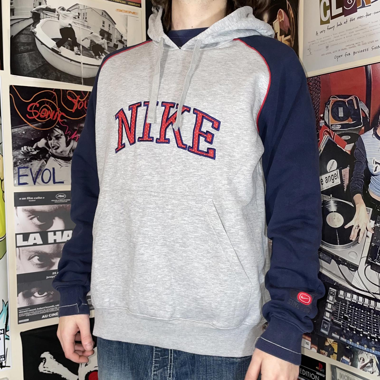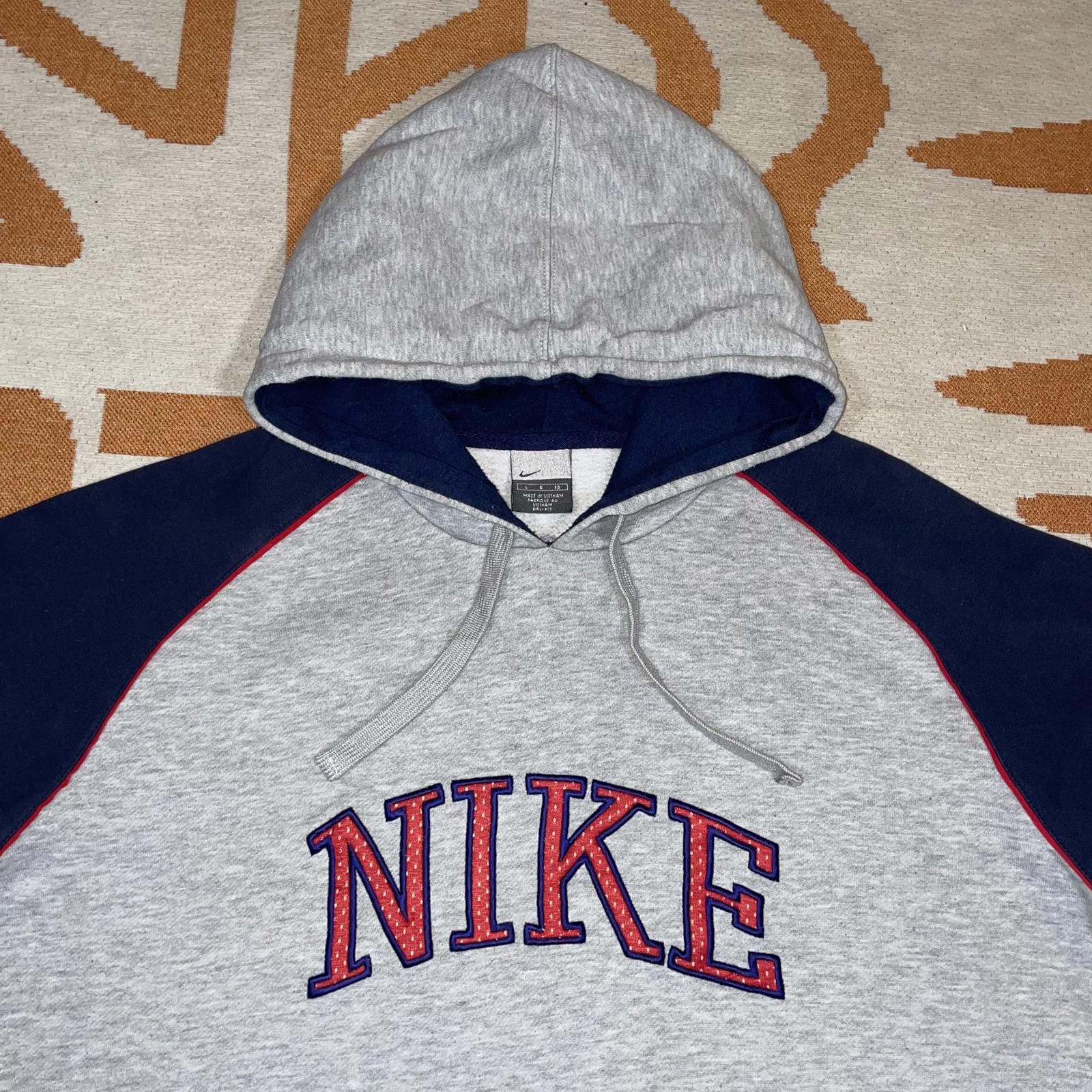 Nike 00s Embroidered Grey/Navy Spell-Out Hoodie L