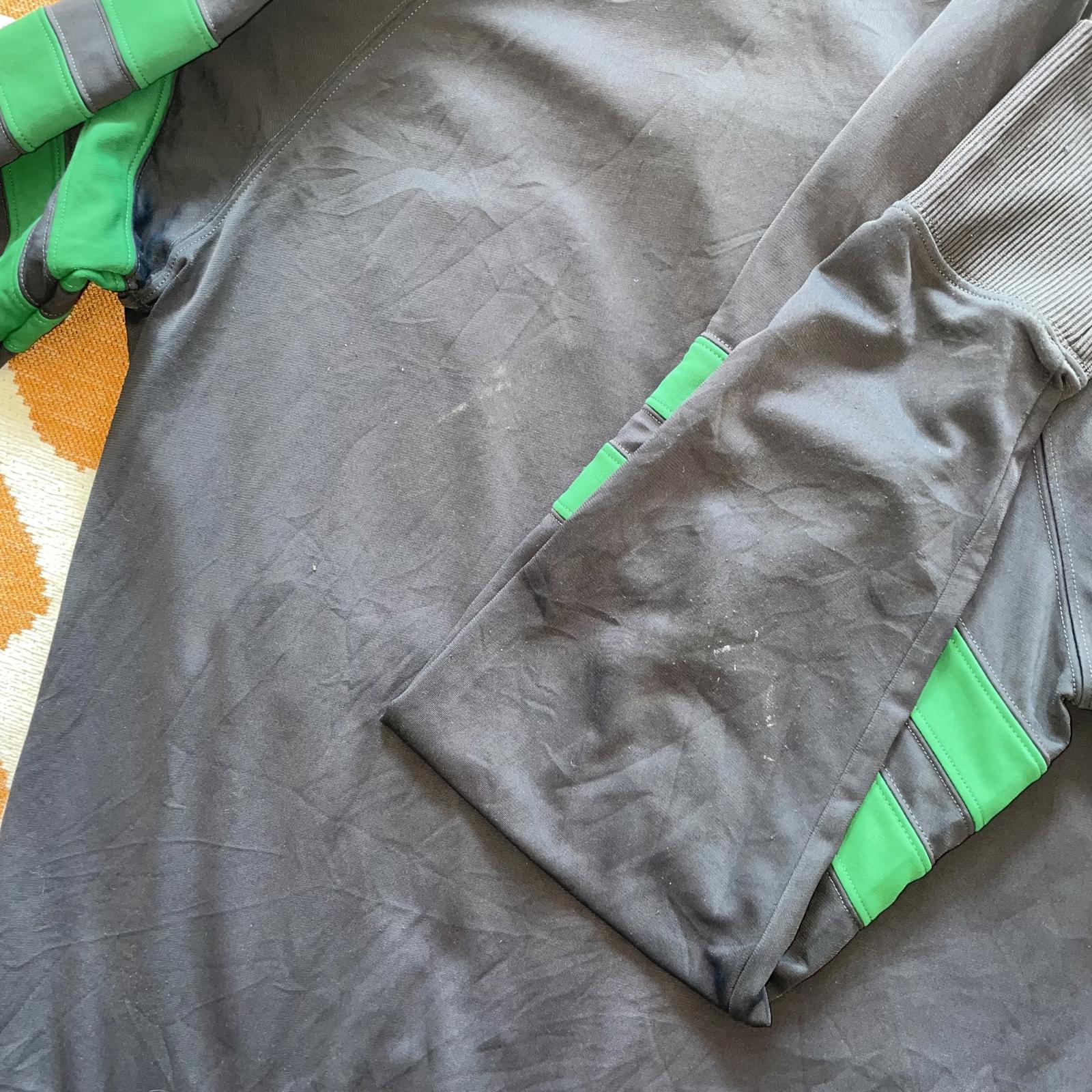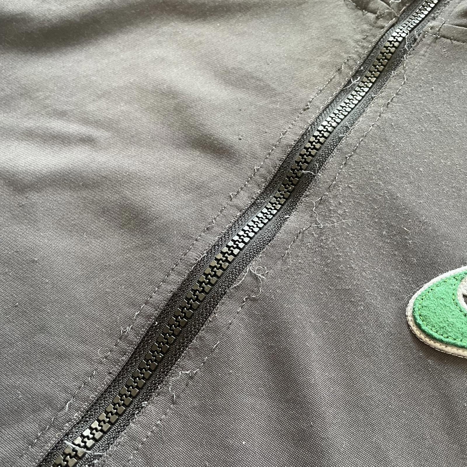Good used condition. Pulled stitching by zipper, small marks on back and sleeve.