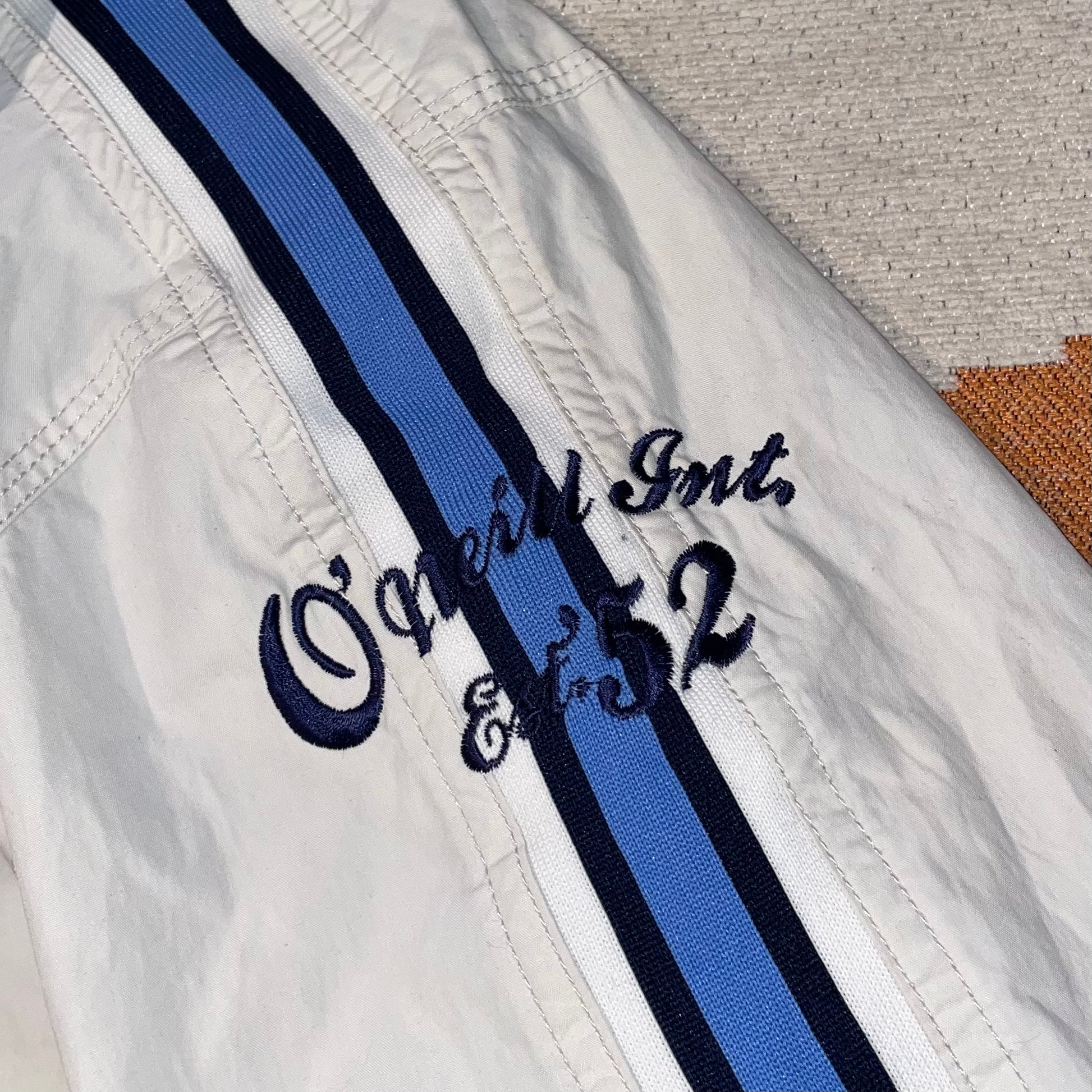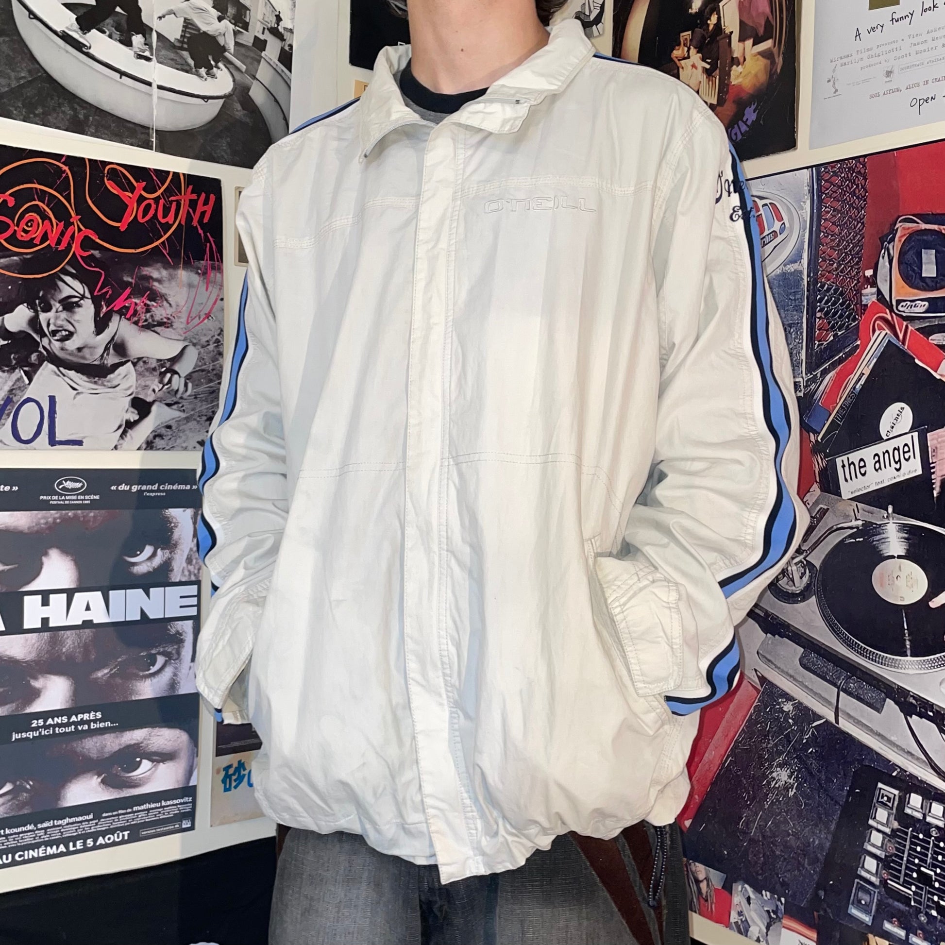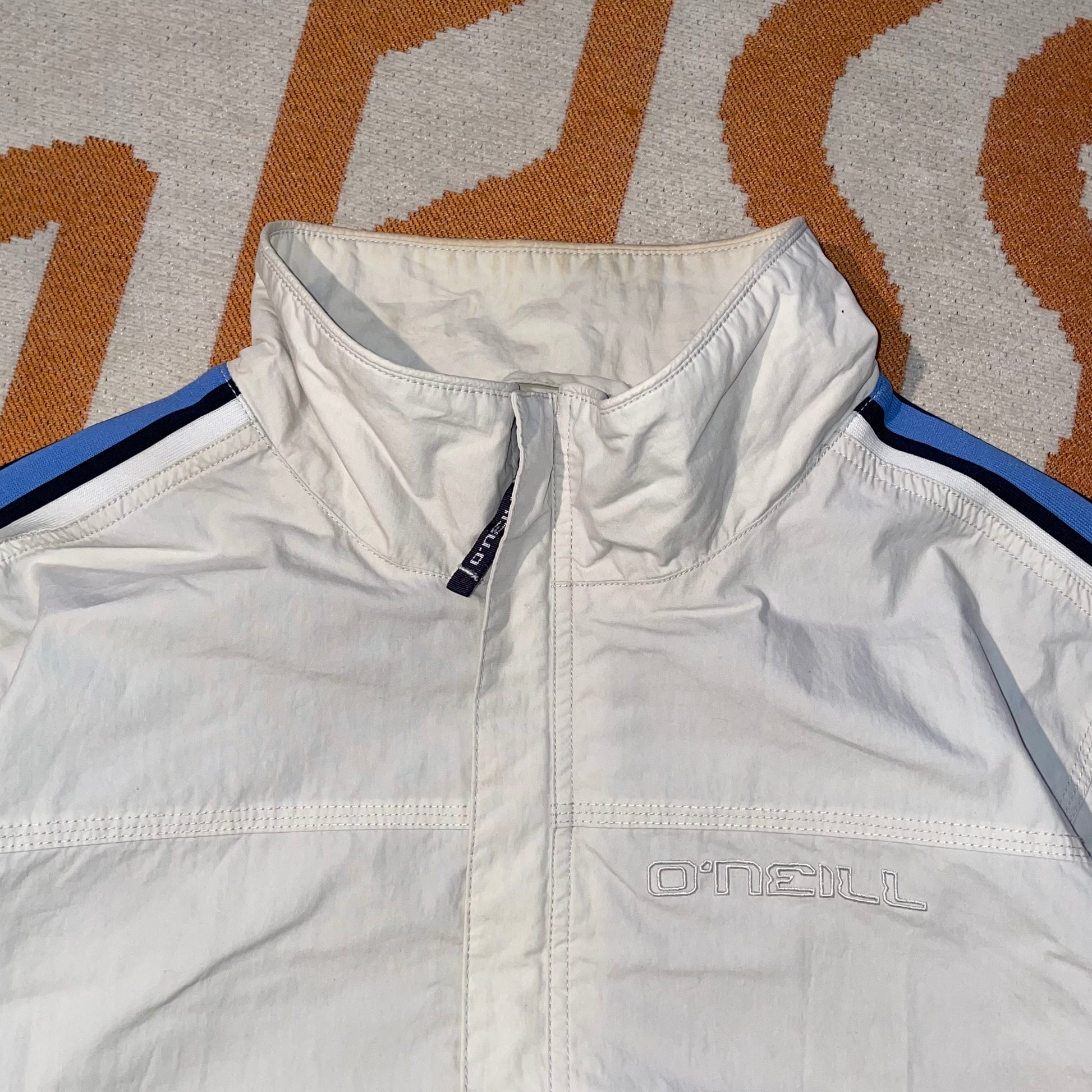 Sick 2000s O'Neill surfwear light jacket with embroidered stripes down arms and detailing on chest. Nice quality and baggy with toggles at bottom to adjust size.