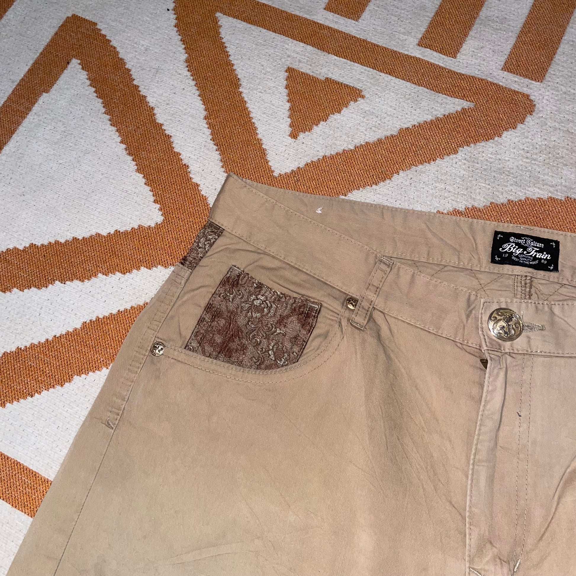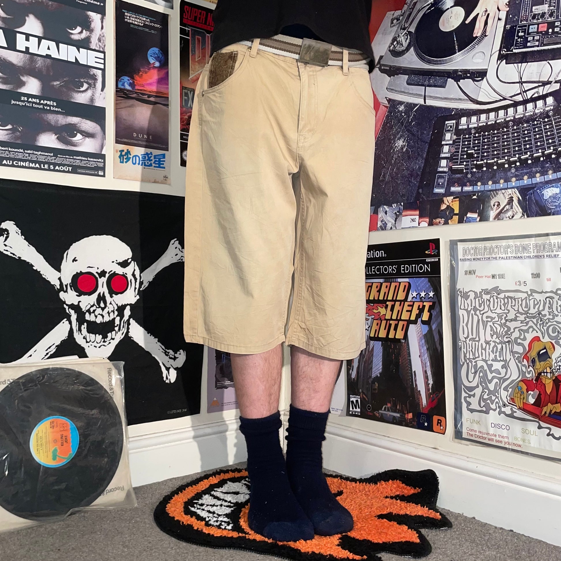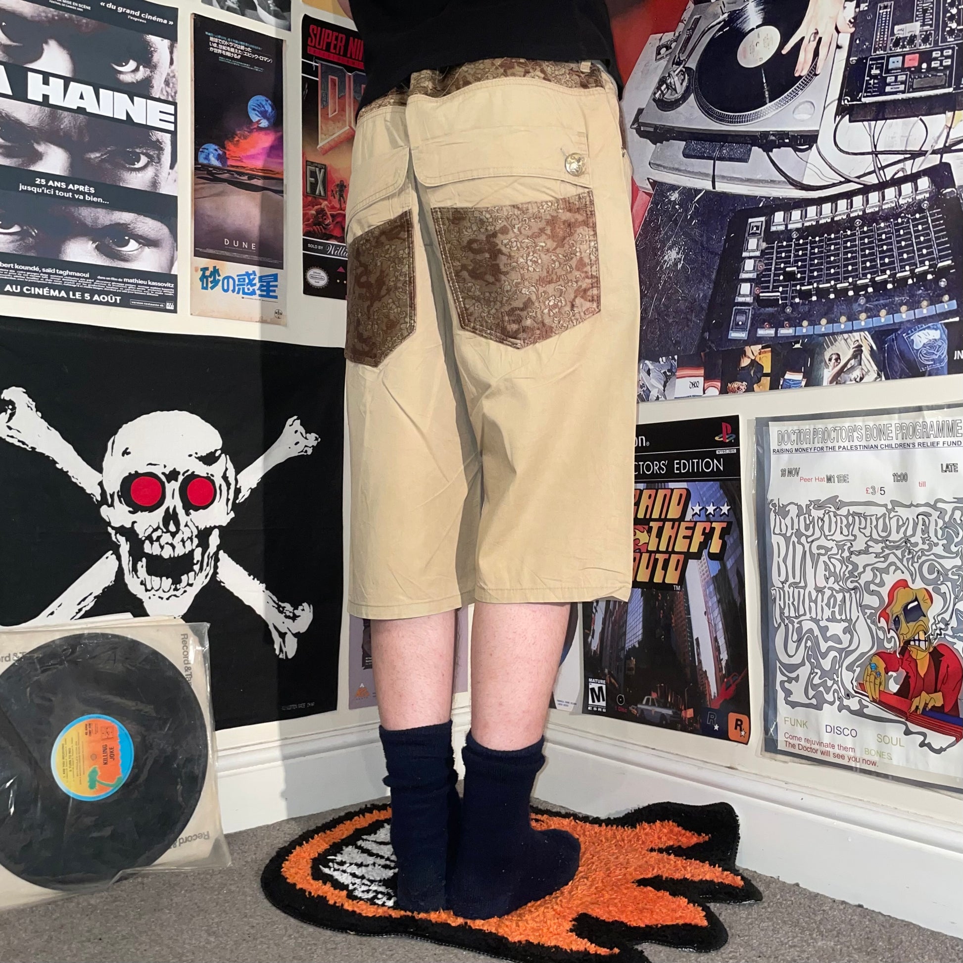 Really cool 2000s Osaka Big Train Japanese shorts with pattern over front/back pockets and baggy 3/4 fit. Made from light parachute pants style material. Perfect for summer.