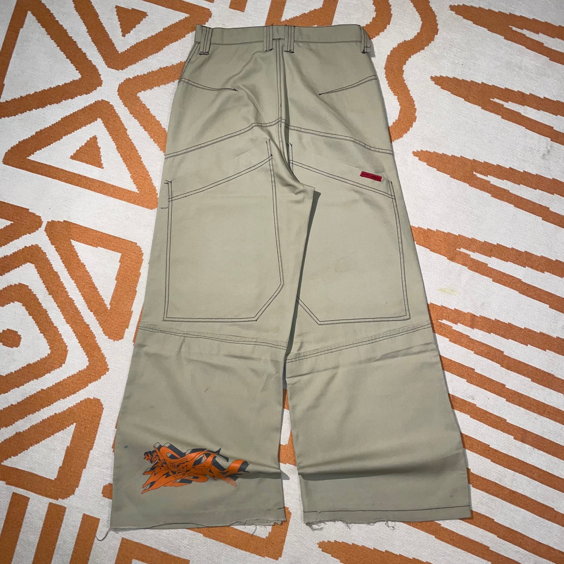 Sick 2000s Outfit London trousers with printed graffiti ‘wildstyle’ graphic on leg and super wide fit. Iconic y2k streetwear.