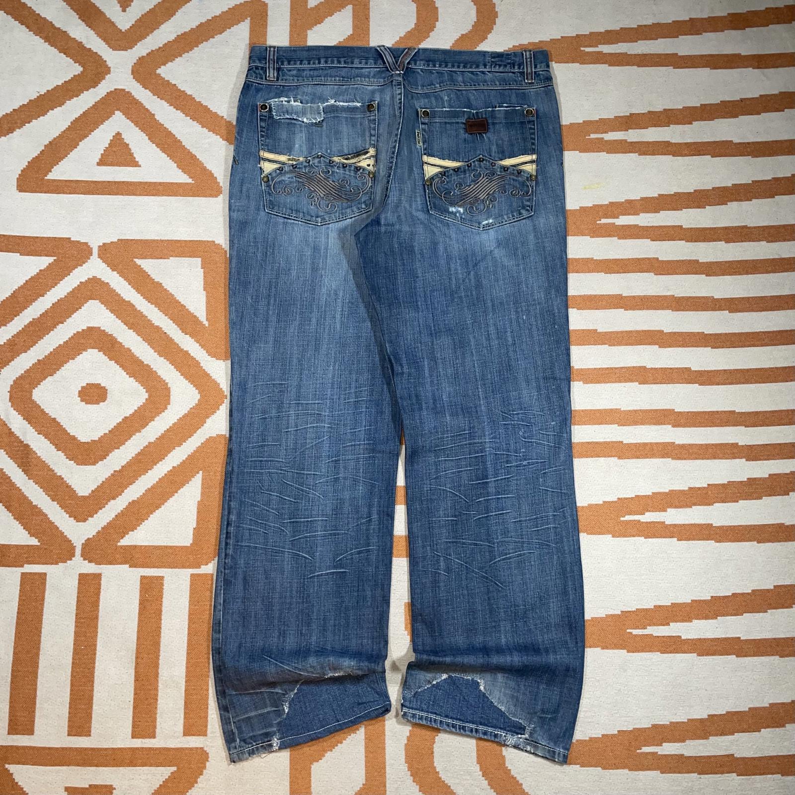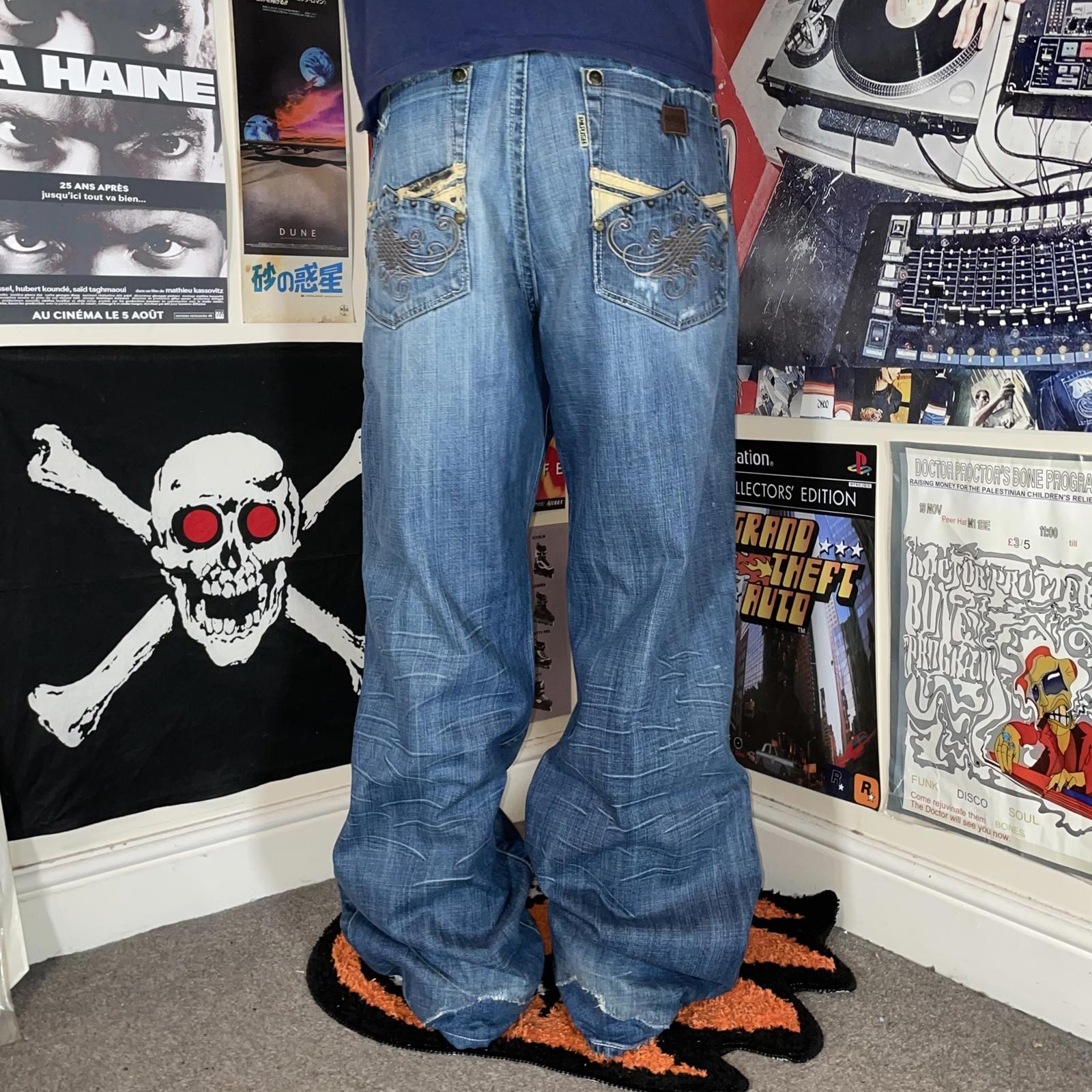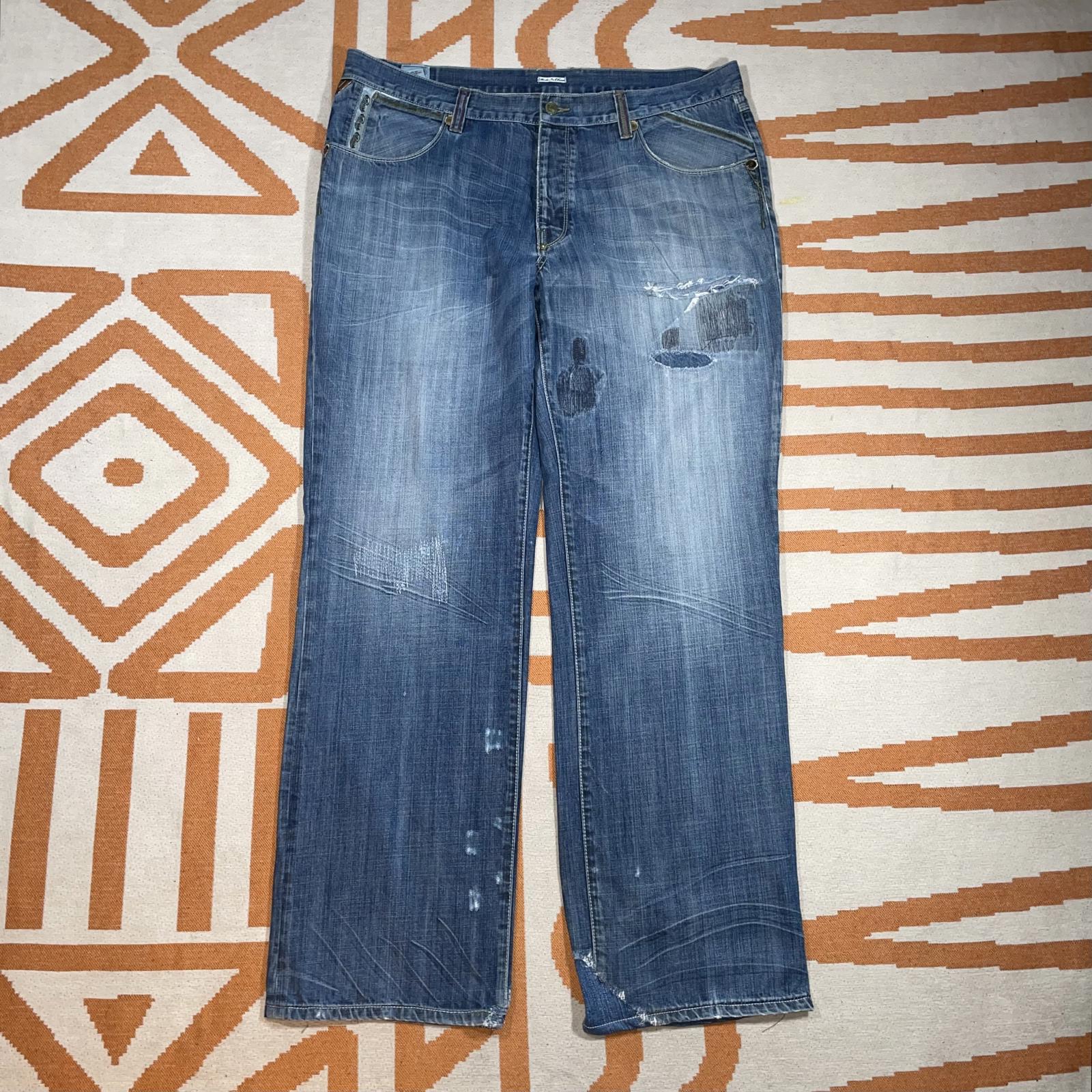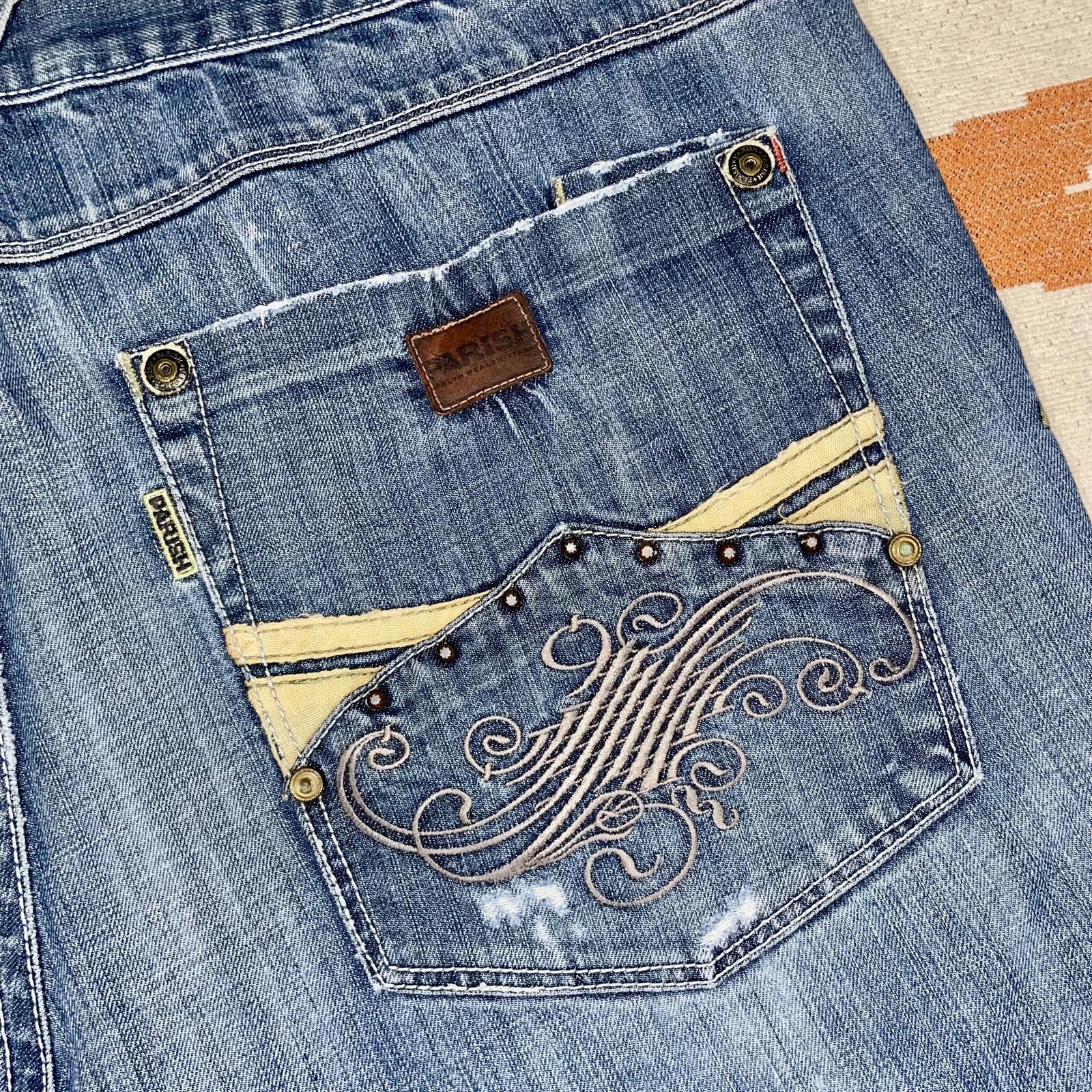 Parish 00s Embroidered Baggy Blue Jeans 40x33