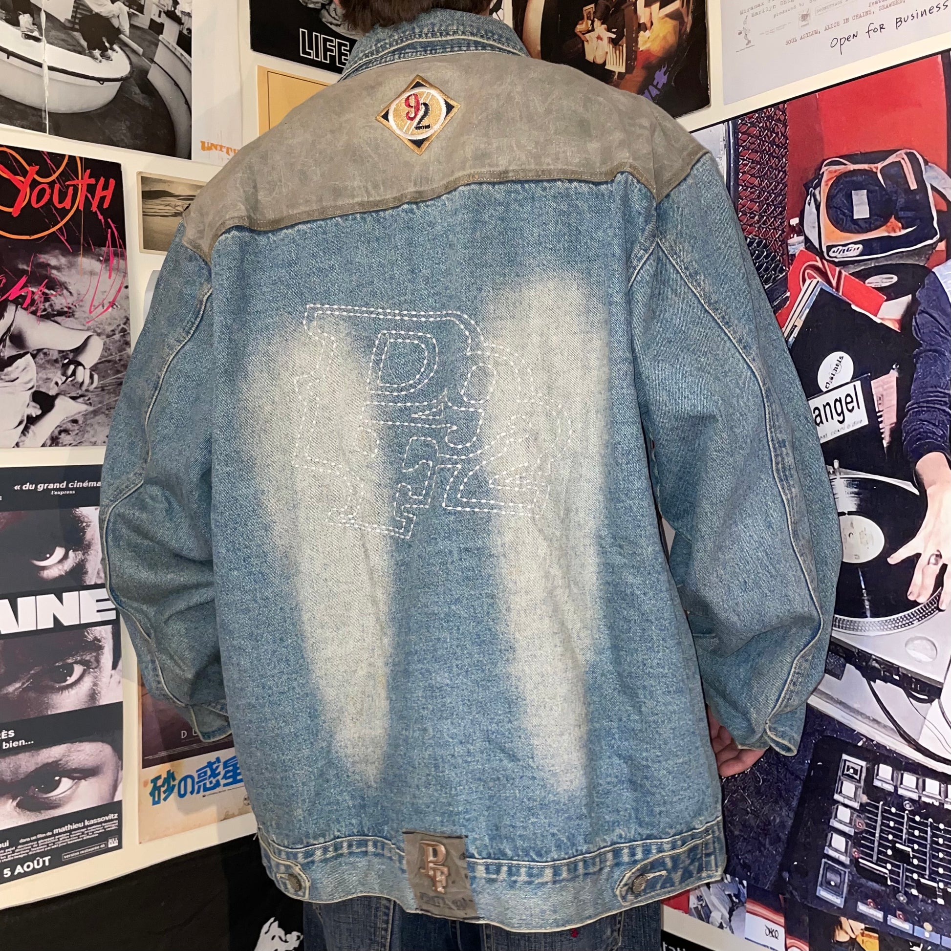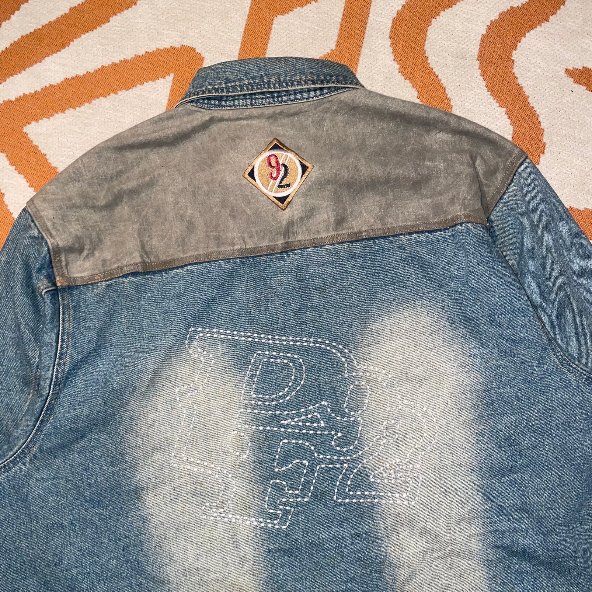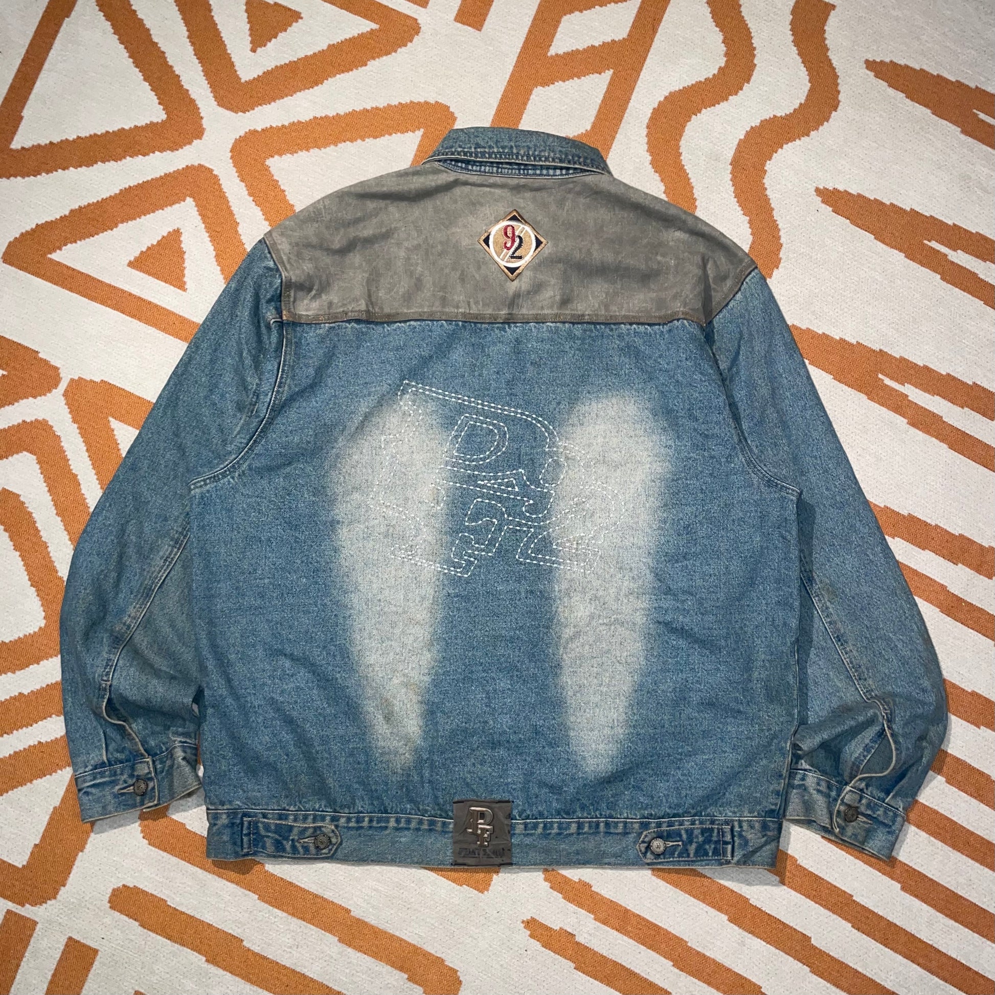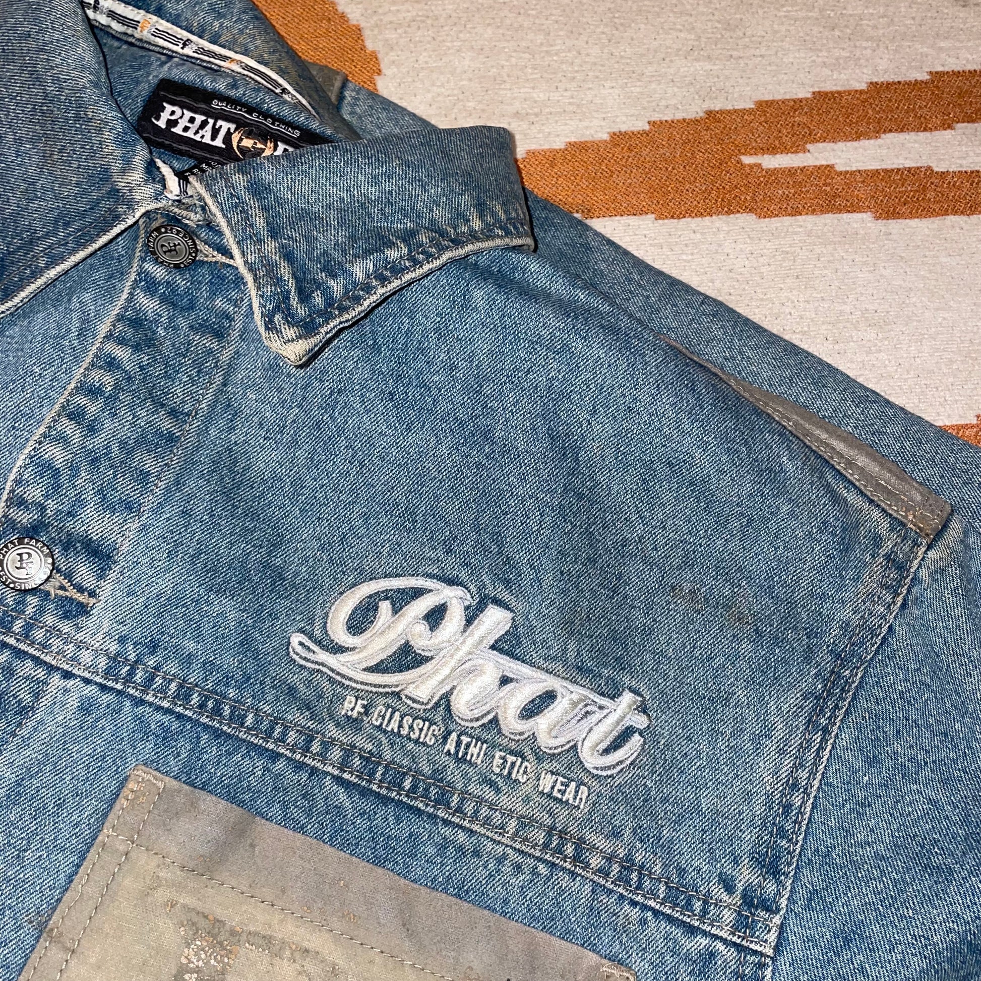 Beautiful 2000s Phat Farm denim jacket with panelled/embroidered design. Lettering on chest. Loose industrial fit.