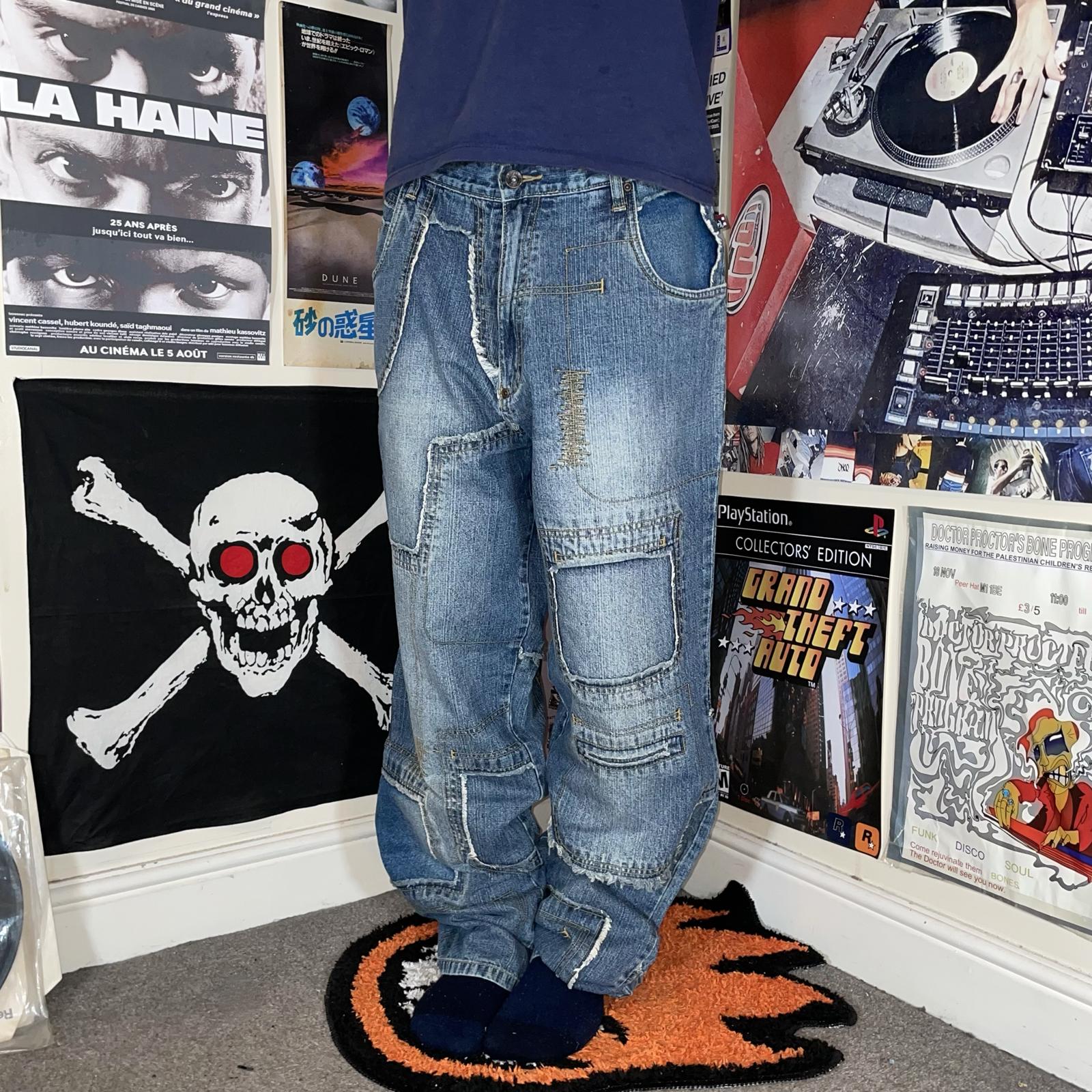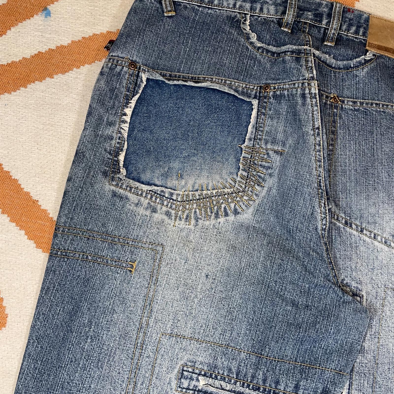 Phat Farm 00s Patchwork Baggy Blue Denim Jeans 34x33