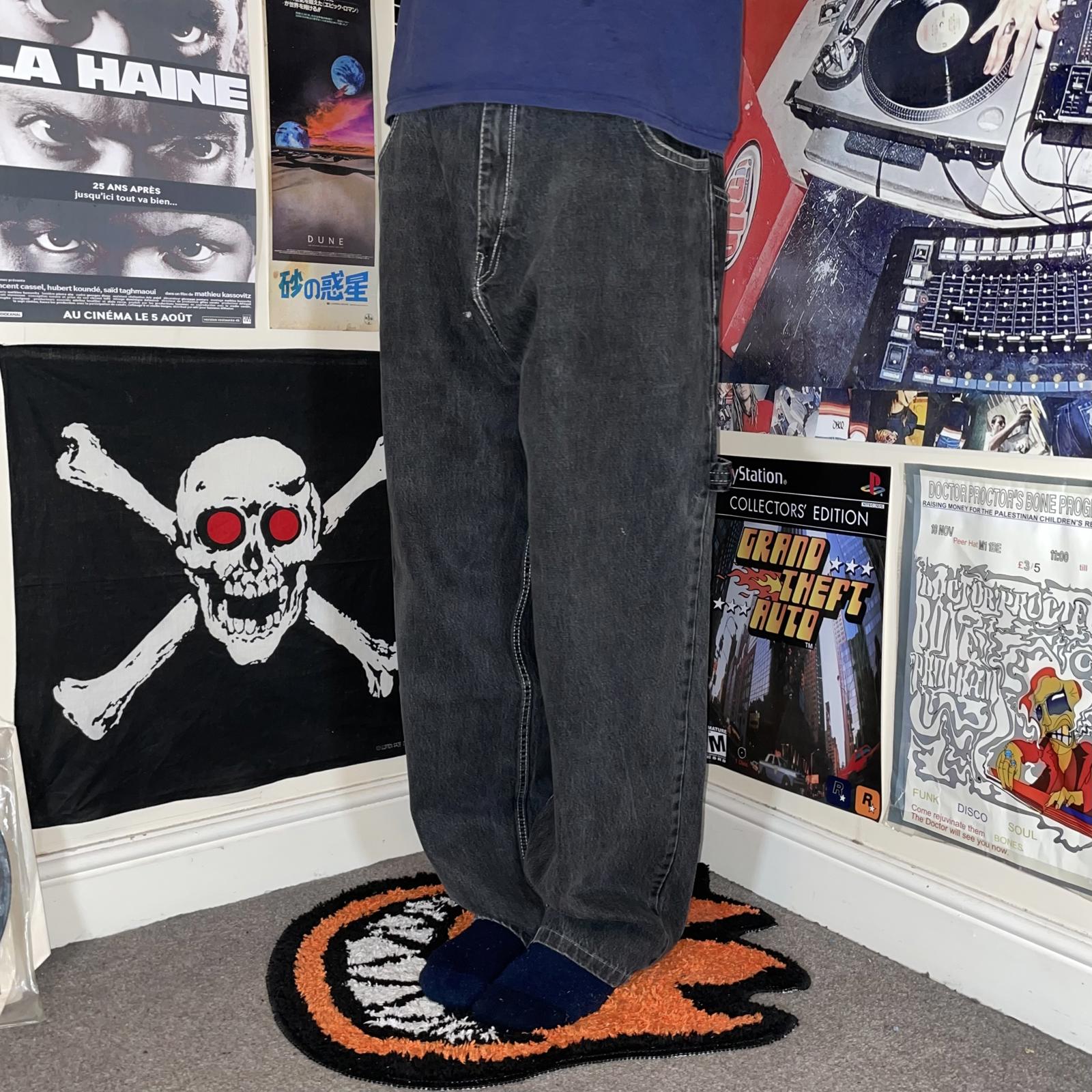 Phat Farm 90s Black Baggy Denim Carpenter Jeans 40x32
