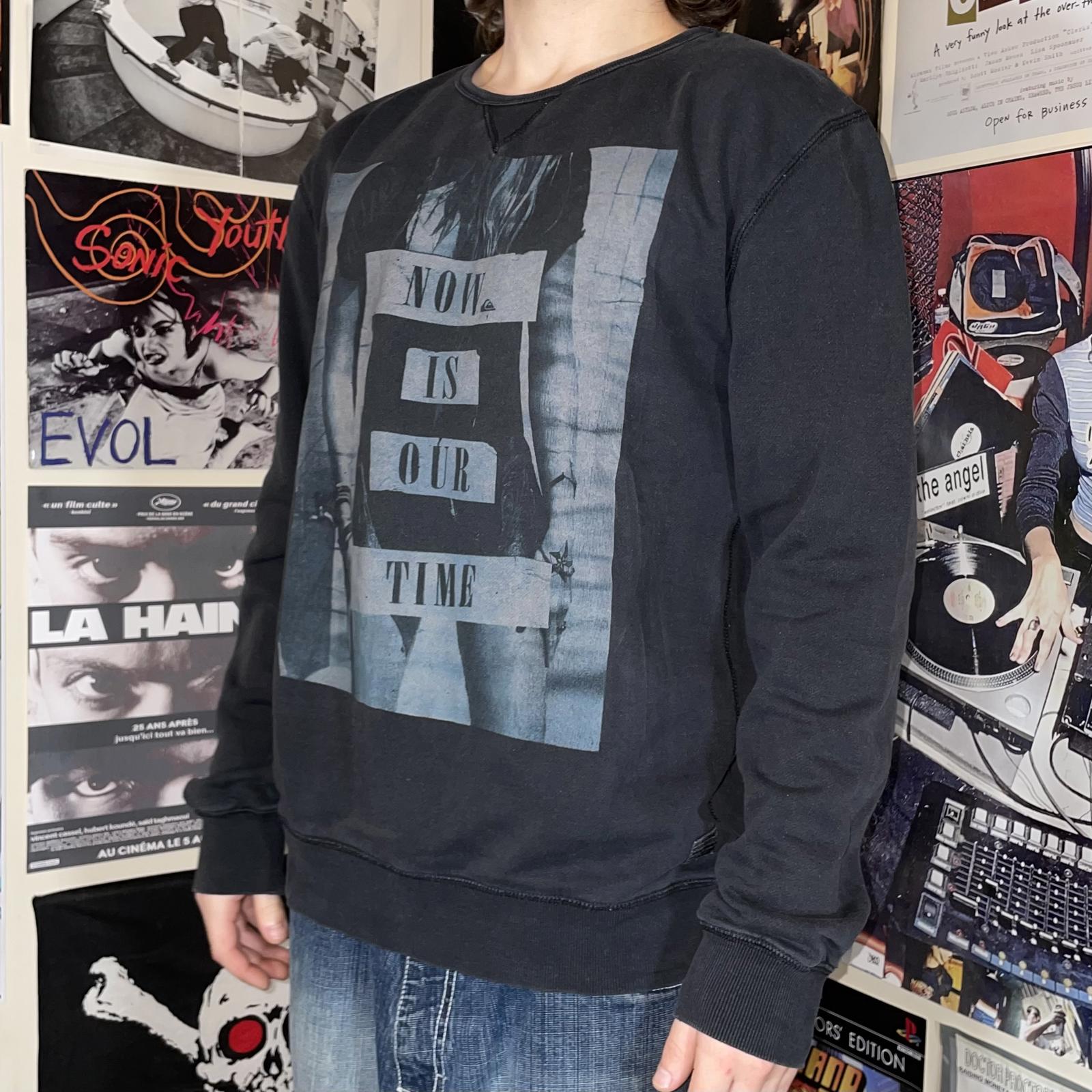 Quiksilver 00s Graphic Beach Black Sweatshirt L