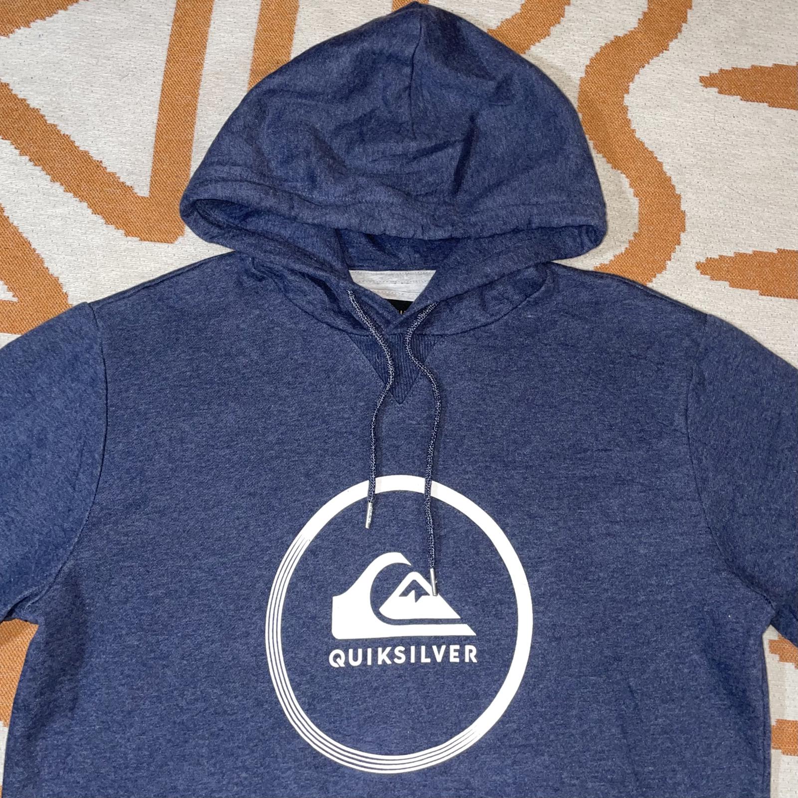 Quiksilver 00s Navy Logo Print Hoodie L