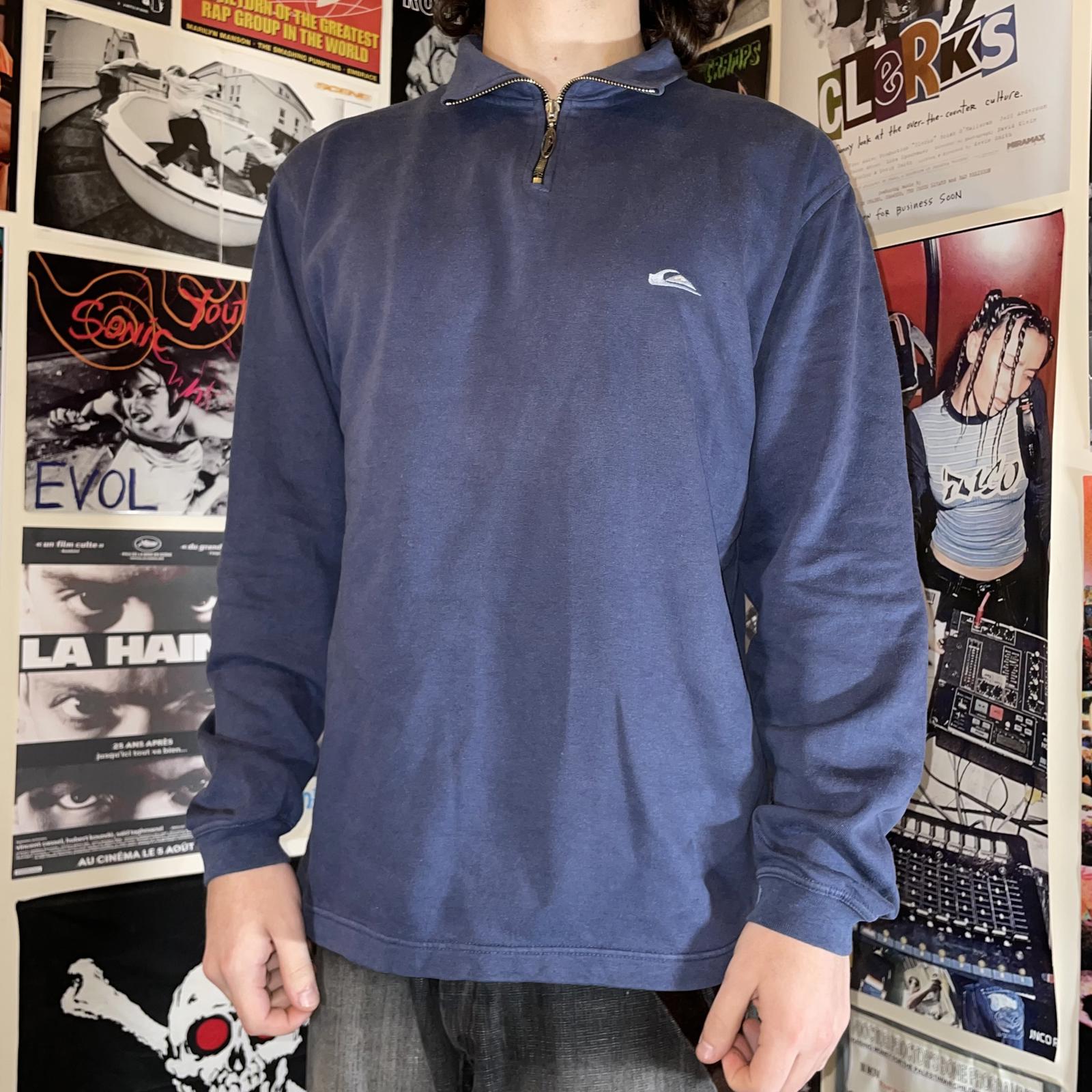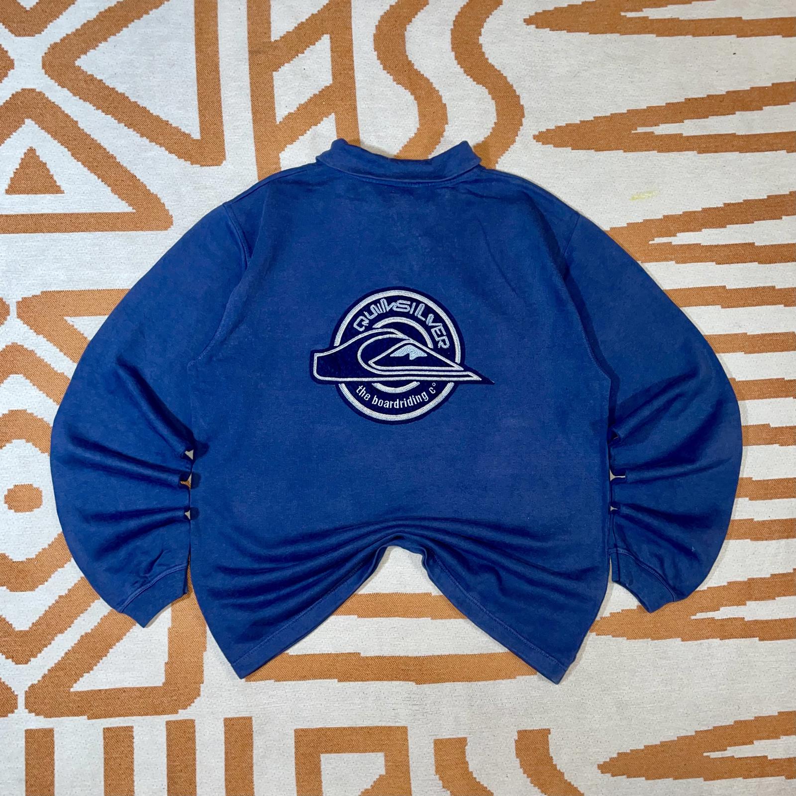 Quiksilver 90s Embroidered Blue Quarter-Zip Sweatshirt M