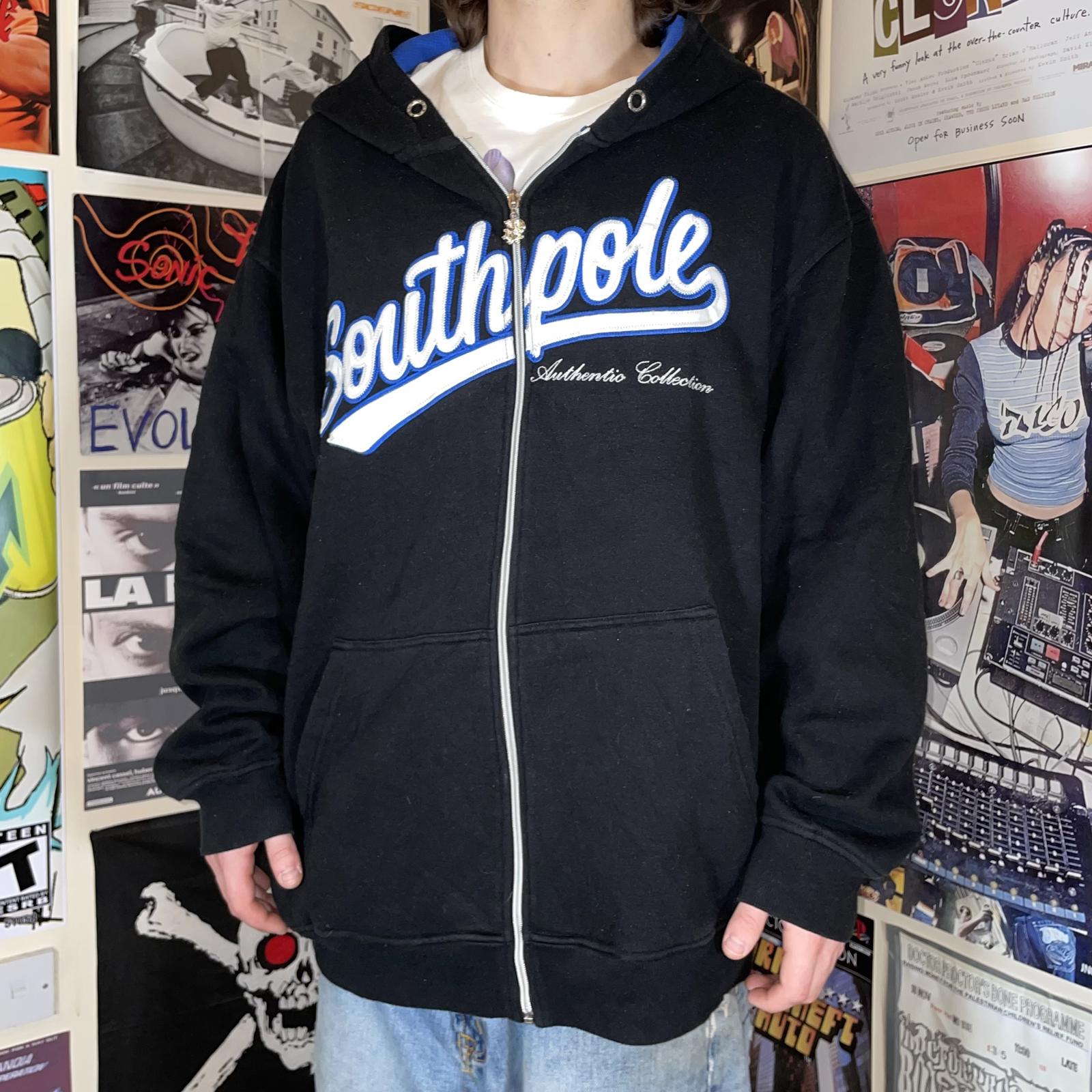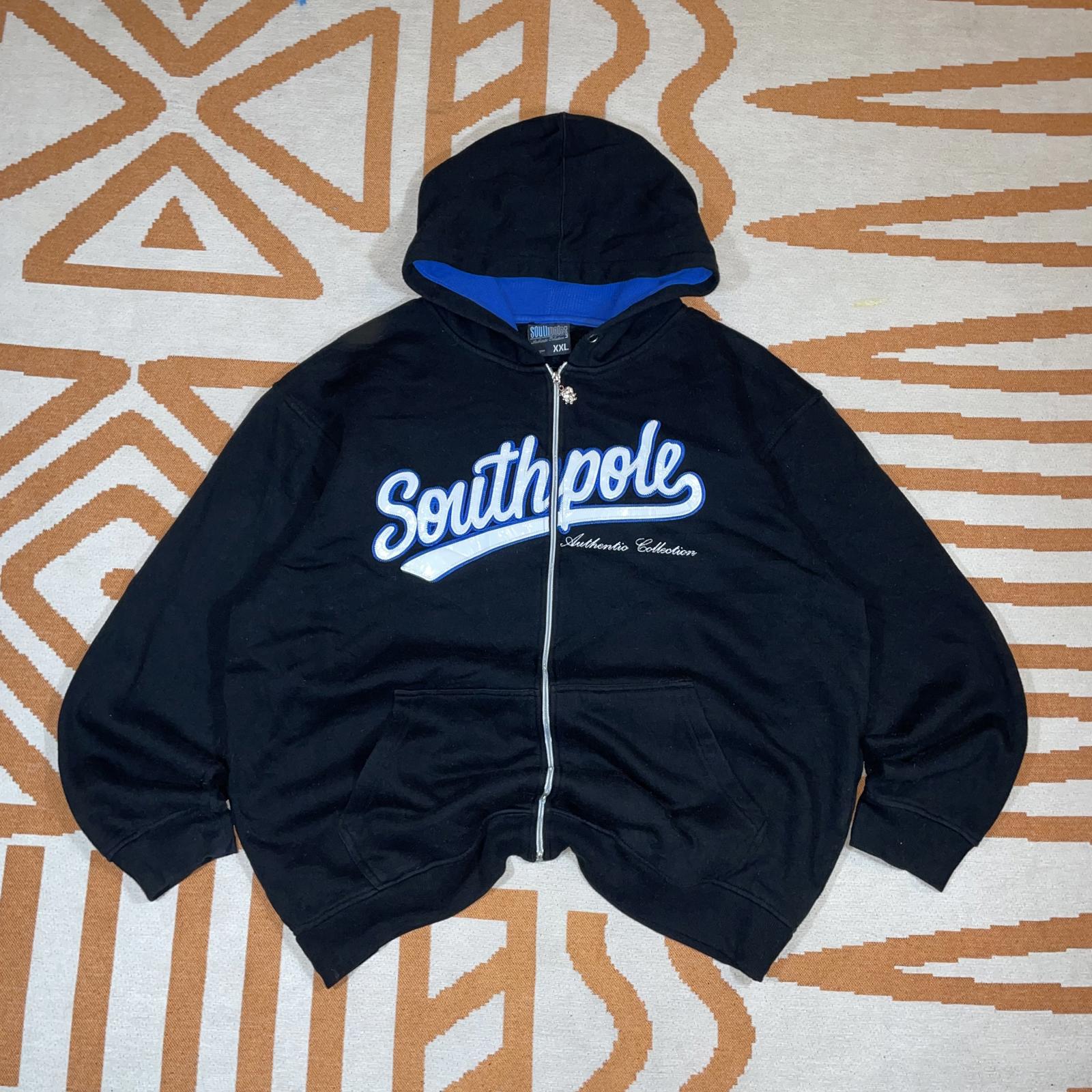 Southpole 90s Embroidered Black/Blue Zip Hoodie XXL