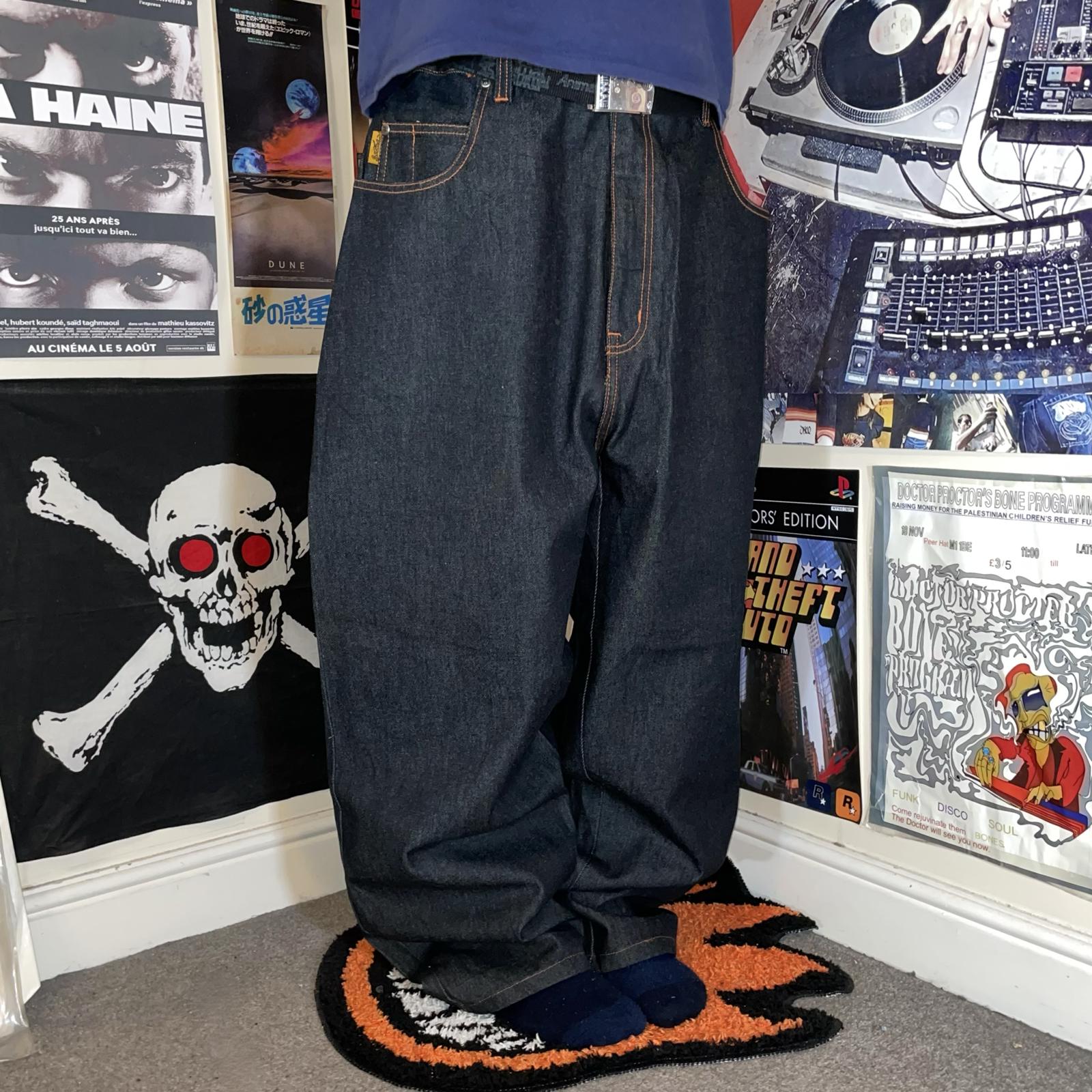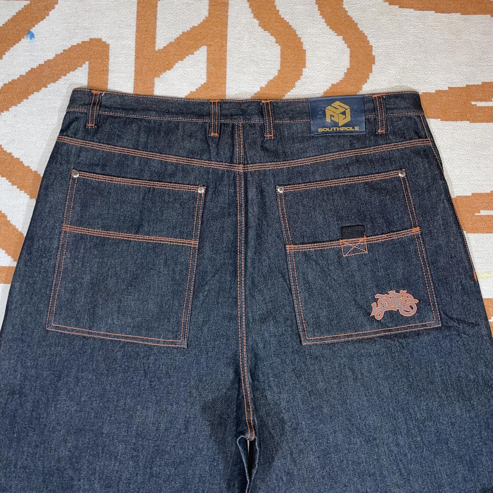 Southpole 90s Embroidered Handstyle Baggy Black Denim Jeans 42x34