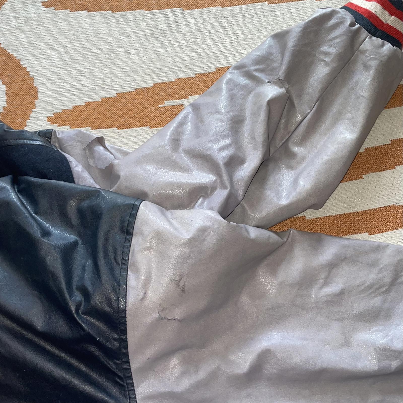Good used condition. Damage/holes in outer lining on sleeves and back, shown in pictures. Light marks from age.