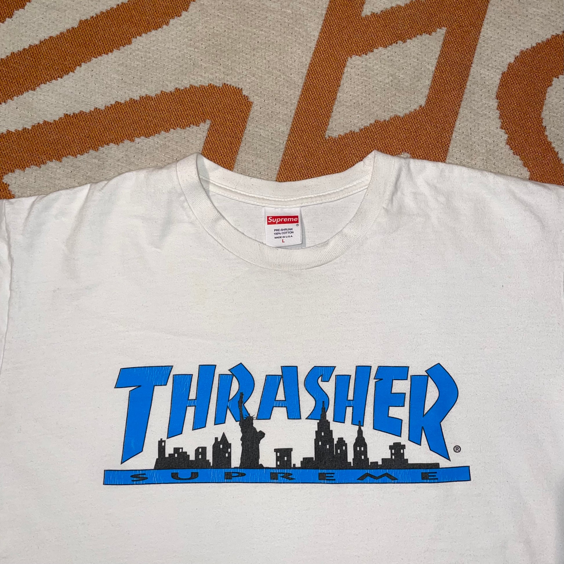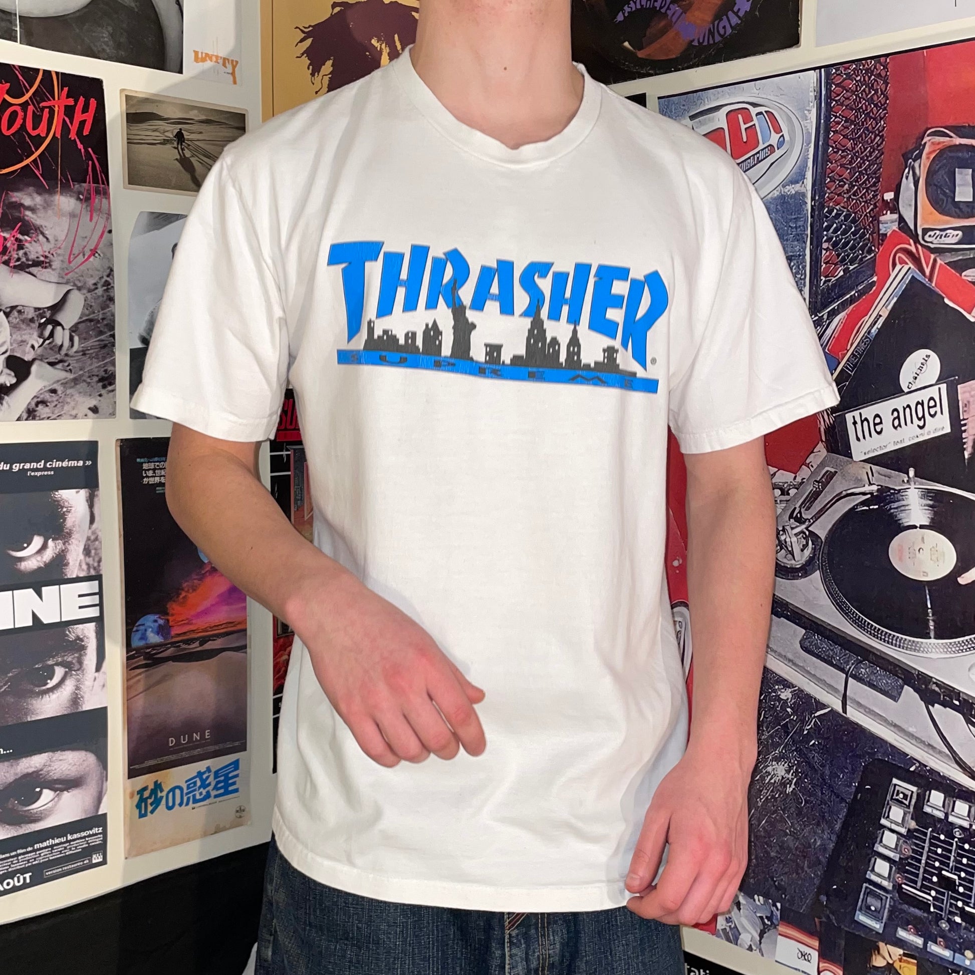 Dope Thrasher/Supreme collab ‘Skyline’ tee with print on front and loose fit. 100% authentic.