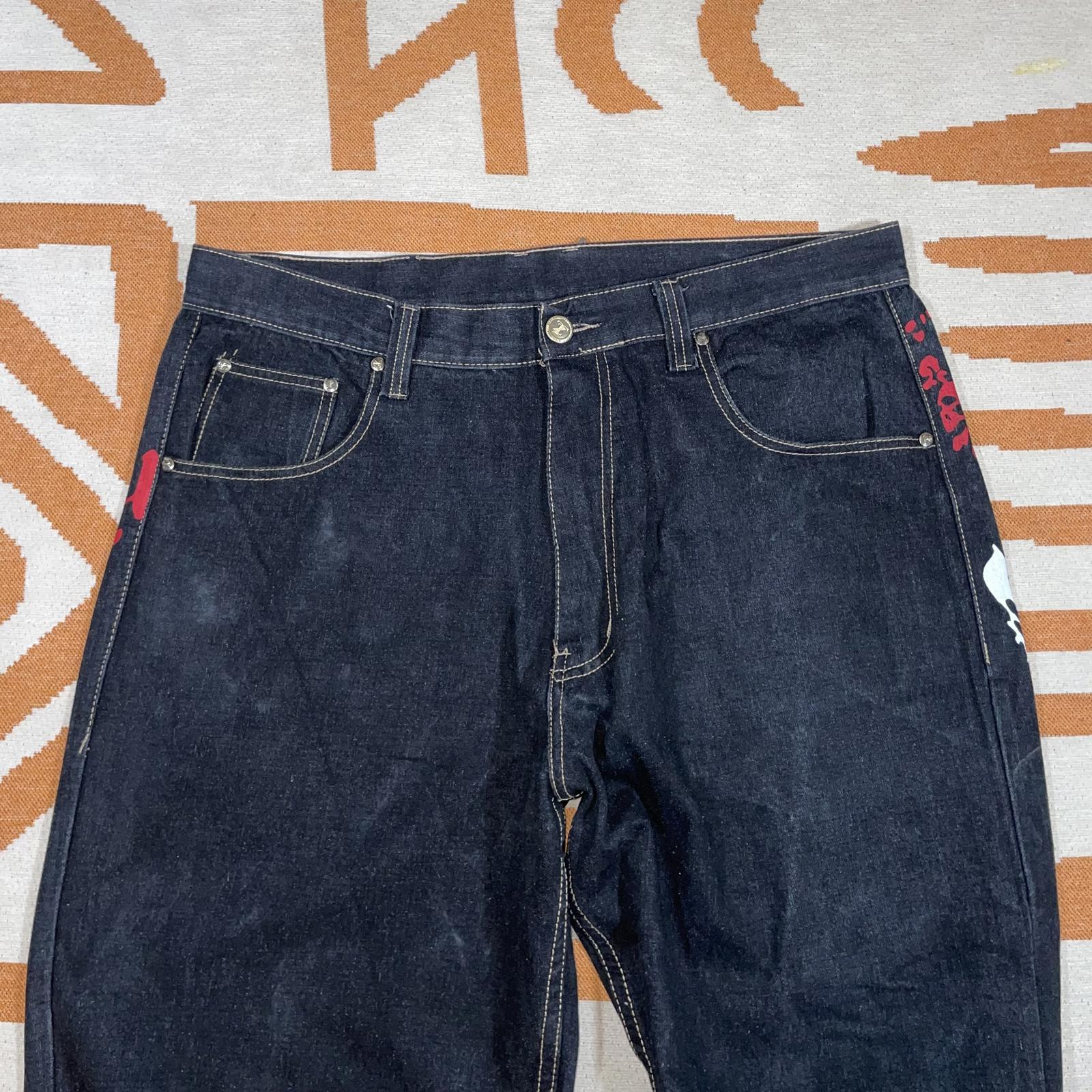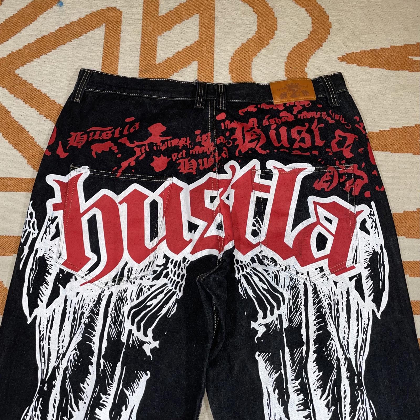 Townz 00s Printed Hustla Black Baggy Denim Jeans 38x30