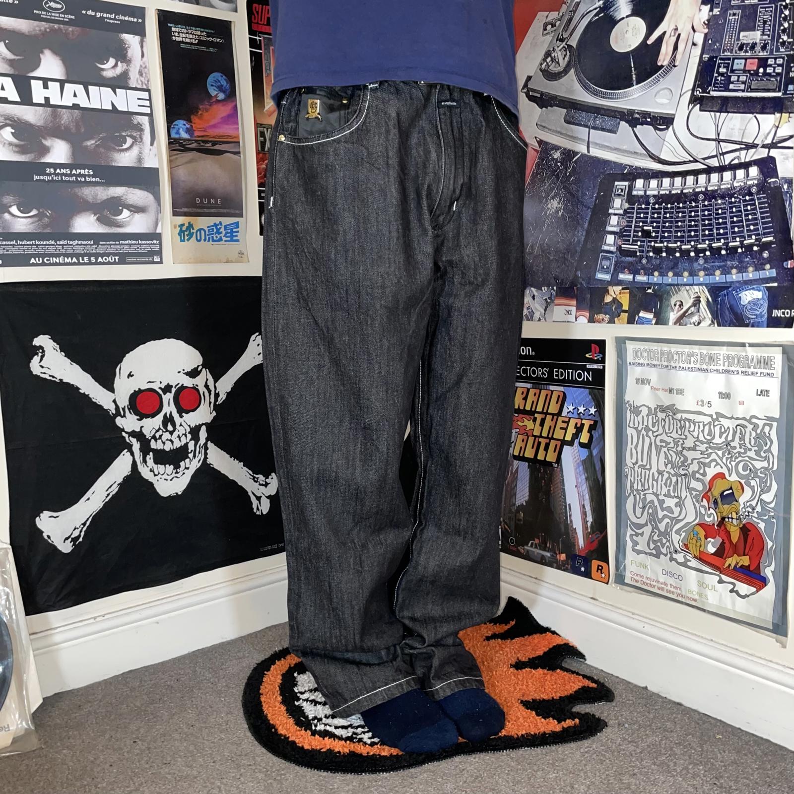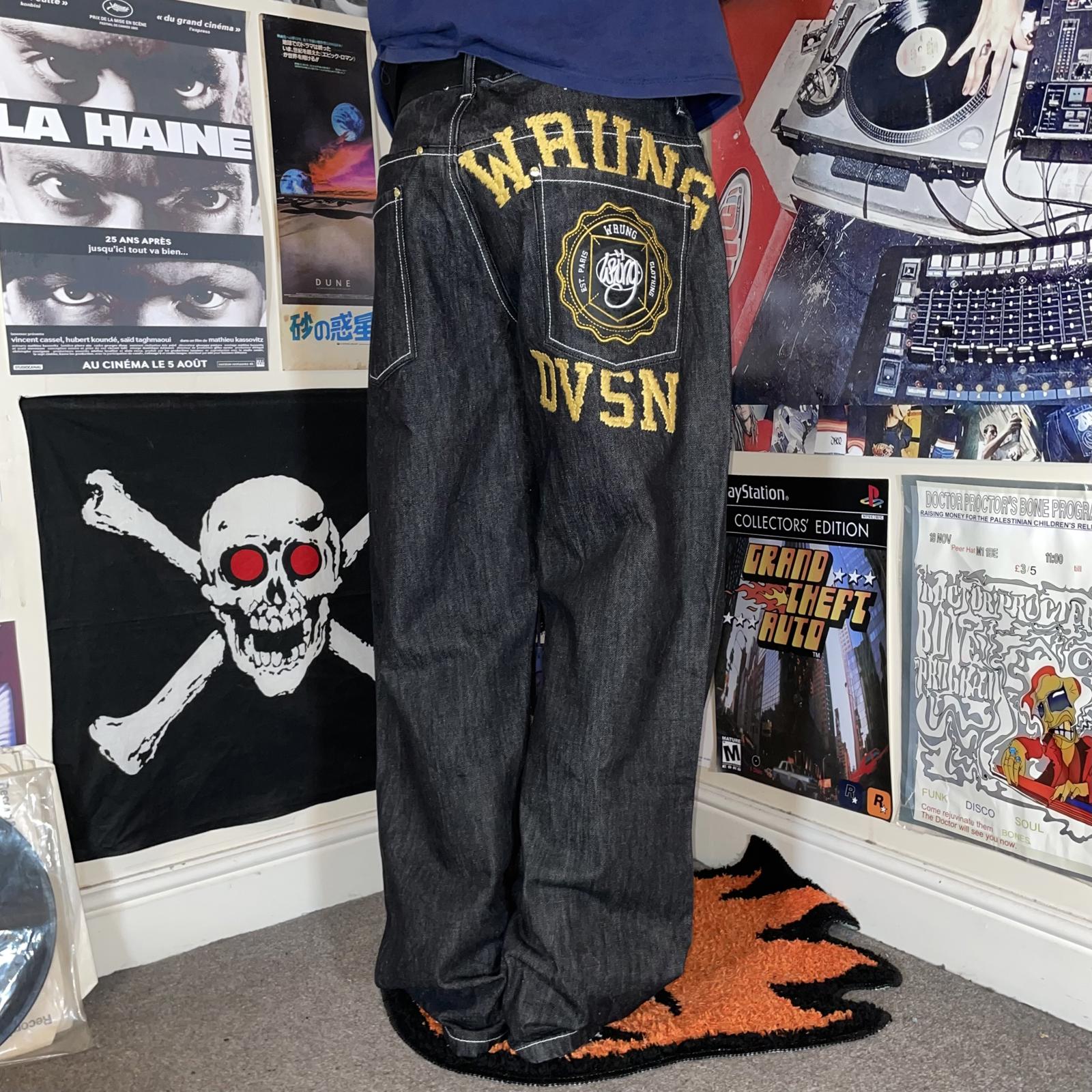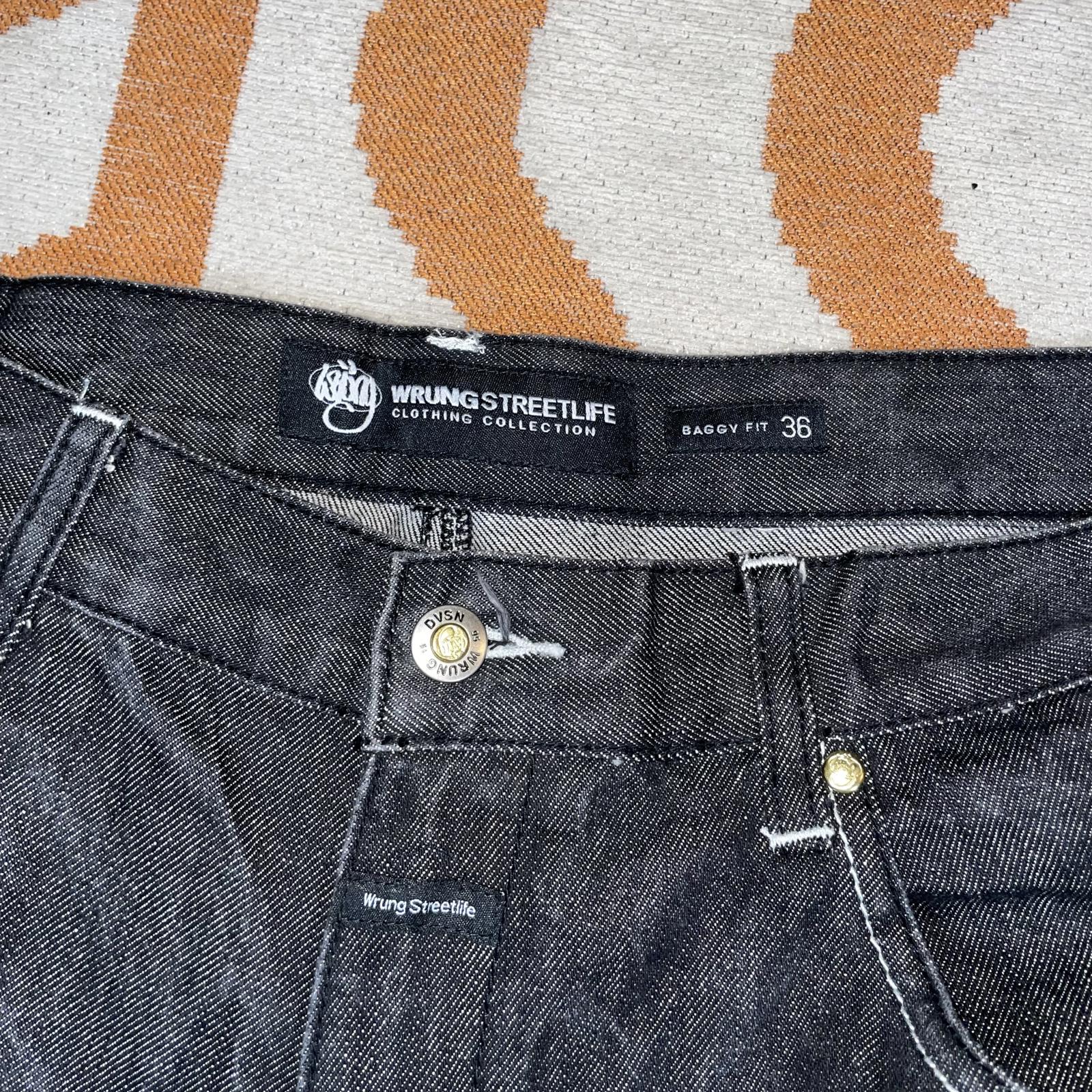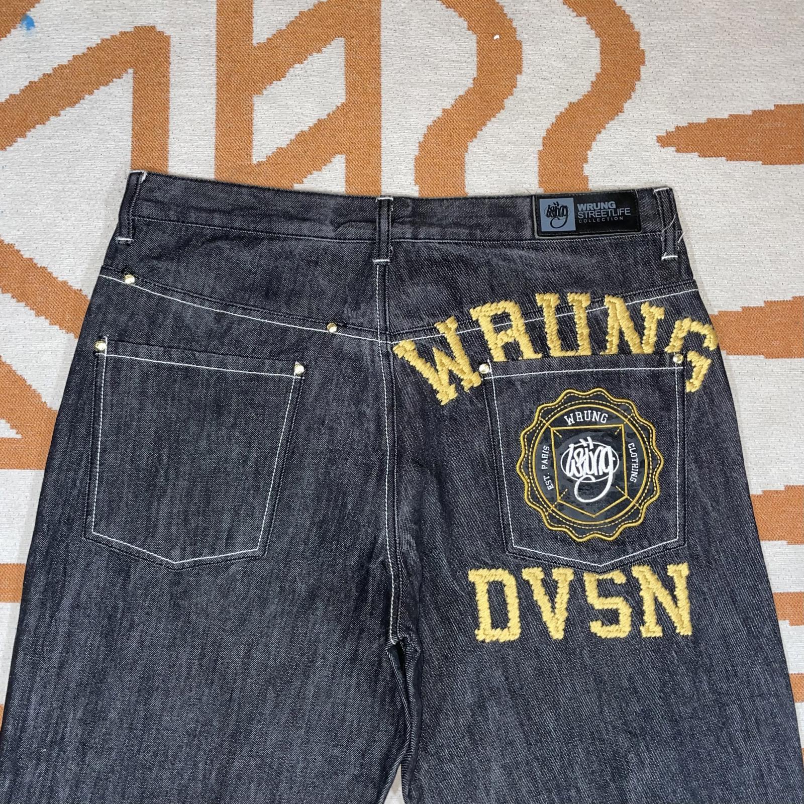 Wrung Division 00s Embroidered Baggy black Denim Jeans 36x32