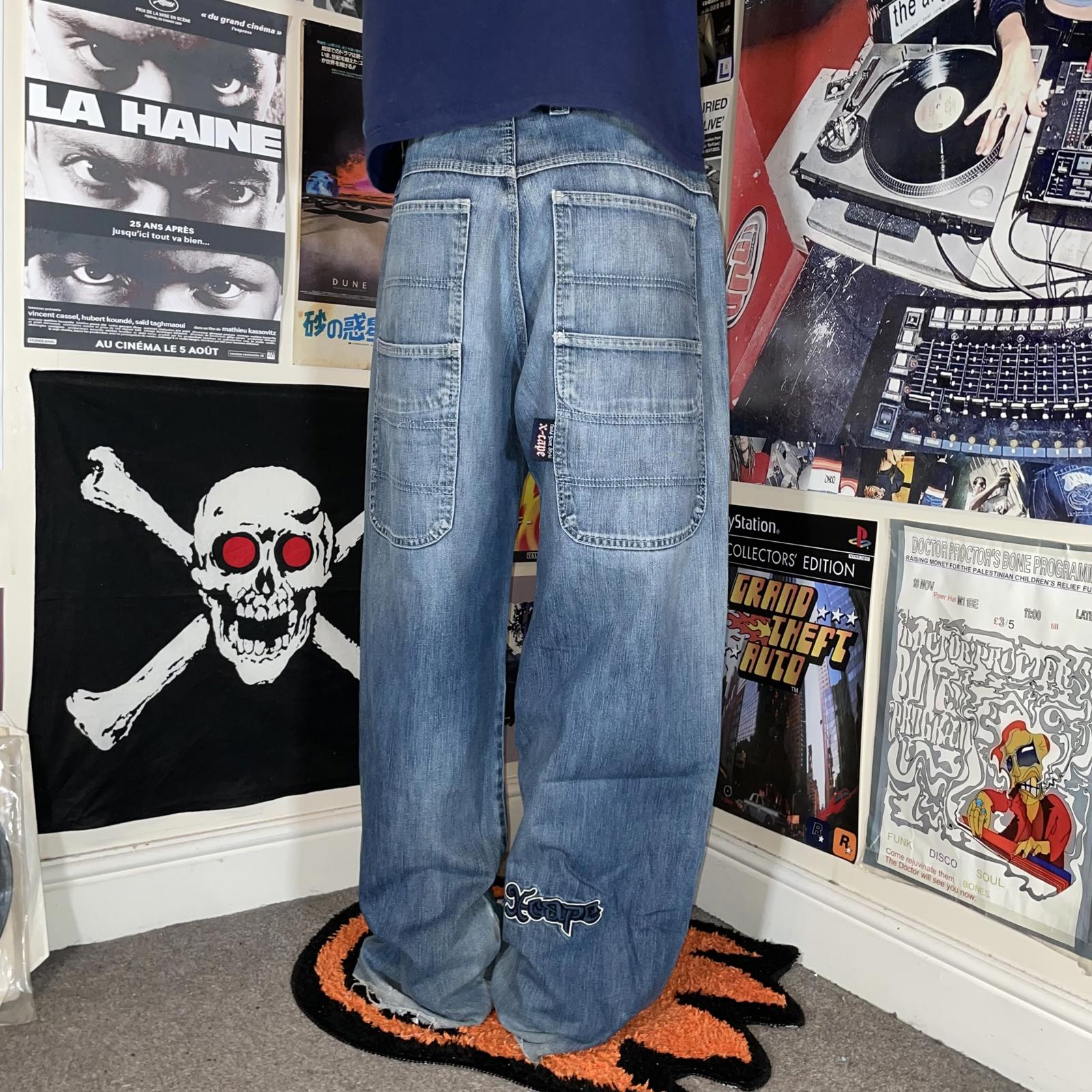 X-Cape 00s Embroidered Baggy Blue Jeans 34x32