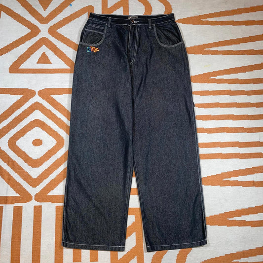2Pac 90s Embroidered Baggy Black Denim Jeans 36x34
